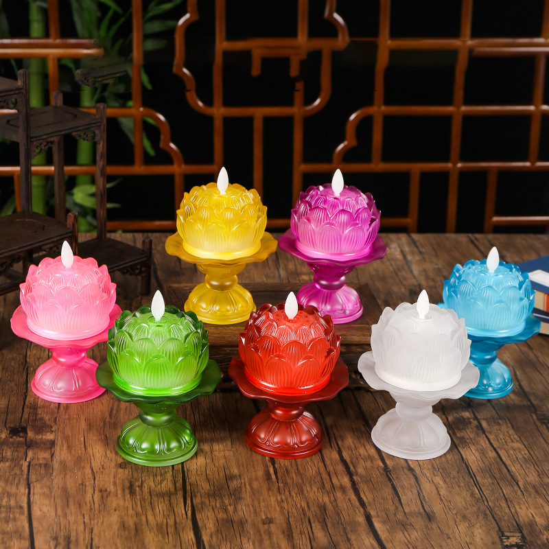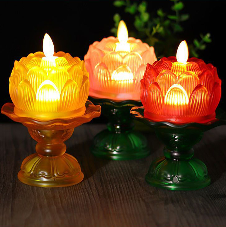 - Nến điện tử hoa sen thuỷ tinh, đèn lưu ly. Nến điện tử hoa sen thuỷ tinh, đèn lưu ly thường được dùng đặt trên ban thờ tại nhà, ban thờ phật tại chùa, hoặc đặt trên ban thần tài tại các cửa hàng.