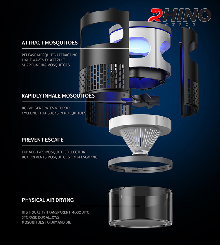 Đèn bắt muỗi Rhino L904 Tích hợp đèn ngủ, độ ồn thấp. Máy bắt muỗi, dĩm đồ ổn vừa phải Đèn ngủ bắt muỗi hiệu quả L904 gồm 3 chế độ