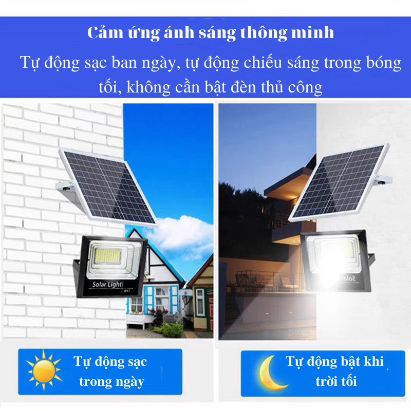 KHÔNG TỐN TIỀN ĐIỆN -> ĐÈN LED NĂNG LƯỢNG 100W Không sử dụng điện lưới do dùng năng lượng mặt trời. Có tặng kèm remote, chỉnh nhiều chế độ Tự động hoạt động: Ban ngày