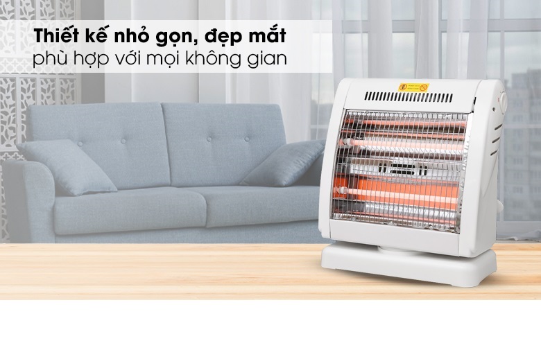 - Tự động ngắt điện khi quạt bị nghiêng hay đổ Đèn Sưởi Điện 2 Bóng Halogen 800W Xoay 90 Độ - Hàng Chính Hãng là một trong những thiết bị sưởi ấm không thể thiếu tại gia đình trong mùa đông. Sản phẩm sử dụng đèn Halogen, tỏa nhiệt đều, làm ấm nhanh, không gây khó thở và khô da, đảm bảo an toàn cho người sử dụng. Kiểu dáng sang trọng, hiện đại Đèn Sưởi Điện 2 Bóng Halogen 800W Xoay 90 Độ - Hàng Chính Hãng có thiết kế sang trọng hơn, kiểu dáng hiện đại và bắt mắt, nhỏ gọn tiết kiệm diện tích và phù hợp mọi không gian như phòng khách, phòng ngủ, Điều khiển dễ dàng bằng nút xoay Đèn Sưởi Điện 2 Bóng Halogen 800W Xoay 90 Độ - Hàng Chính Hãng có 3 mức công suất 400W, 800W điều chỉnh bằng núm vặn linh hoạt theo 2 chiều giúp bạn dễ dàng lựa chọn được mức nhiệt phù hợp với môi trường và nhu cầu sử dụng. Chắc chắn, bền đẹp, an toàn Đèn Sưởi Điện 2 Bóng Halogen 800W Xoay 90 Độ - Hàng Chính Hãng có chân đế vững chãi, lưới bảo vệ, tránh gây bỏng cho người dùng. Đặc biệt, lồng và vỏ nhựa phía sau chống cháy tuyệt đối, lưới tản nhiệt giúp sản phẩm không bị hư hỏng do quá nóng. TỎA NHIỆT ĐỀU, KHÔNG GÂY KHÔ DA Làm ấm cực nhanh, không gây khô da Đèn Sưởi Điện 2 Bóng Halogen 800W Xoay 90 Độ - Hàng Chính Hãng sử dụng đèn halogen, làm ấm cực nhanh, độ bền vượt trội, chống chói mắt hiệu quả và không đốt cháy oxy nên không gây khó thở hay khô da khi dùng. Quay đảo chiều, tỏa nhiệt đều khắp phòng Sản phẩm có khả năng quay đảo chiều liên tục, giúp tỏa nhiệt đều khắp phòng, rất thích hợp khi sử dụng tại không gian rộng như phòng khách hoặc phòng có nhiều người. An toàn với người sử dụng Đèn Sưởi Điện 2 Bóng Halogen 800W Xoay 90 Độ - Hàng Chính Hãng có chế độ tự động ngắt điện khi bị nghiêng đổ và hoạt động trở lại bình thường trở lại trạng thái an toàn. Thông số kỹ thuật
