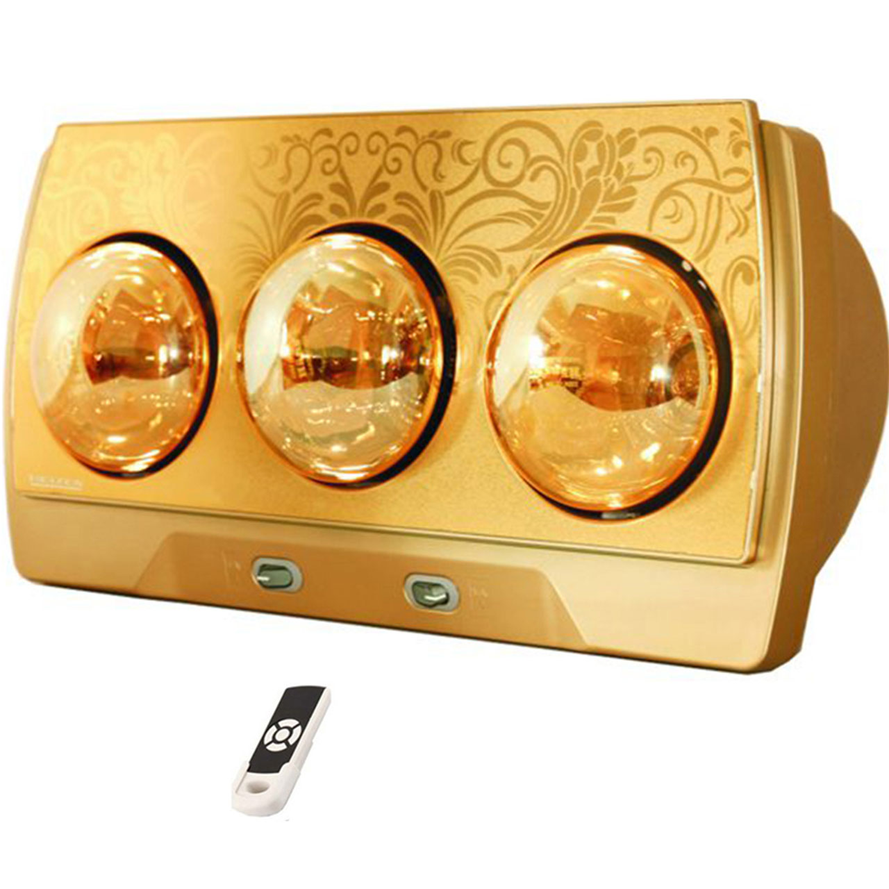 Đèn sưởi nhà tắm 2 bóng cao cấp Với việc sử dụng công nghệ mới, bóng đèn được tráng một lớp hợp kim màu vàng sẽ làm giảm độ chói của ánh sáng mà vẫn không làm giảm đi nhiệt độ do bóng tỏa ra. Đèn sưởi nhà tắm 2 bóng có thể sử dụng ở phòng tắm, phòng ngủ, phòng khách. THÔNG TIN SẢN PHẨM: Điện áp: 220V; 50Hz Model: K2B-G Công suất: 550W đèn 2 bóng Bảng điều khiển: 2 công tắc điều khiển 2 bóng Bóng đèn: 2 bóng tráng kim cương nhân tạo có tác dụng tăng độ ấm và giảm chói mắt khi sử dụng Tuổi thọ Bóng đèn: > 10.000 h (tương đương 6 năm) Dây điện: dài 2m, đầu cắm tròn, 2 chân theo tiêu chuẩn châu Âu Phụ kiện đi kèm: móc treo 2 vít nở. Diện tích phòng: từ 2 - 4 m2 TÍNH NĂNG NỔI BẬT ❶ Thiết kế thời trang, bề mặt bóng tráng kim cương nhân tạo, logo nổi và sắc nét, bóng sưởi bớt chói mắt và có độ ấm cao hơn những bóng thông thường. ❷ Kích thước nhỏ gọn tiết kiệm diện tích cho phòng tắm nhà bạn ❸ Sử dụng bóng hồng ngoại, sưởi ấm nhanh , không đốt cháy oxy ❹ Thiết kế sang trọng phù hợp với mọi phòng tắm