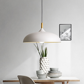 Đế đèn bằng kim loại sơn tĩnh điện, choá đèn bằng nhôm hình phễu có tác dụng hội tụ ánh sáng cao ,thường được sử dụng vào vị trí bàn ăn