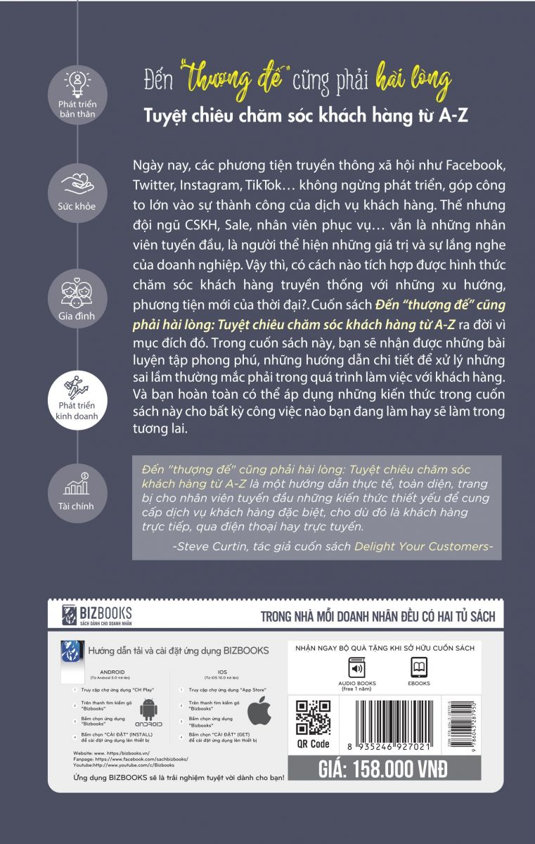 Chính vì vậy, để giải quyết những tình huống KHÓ NHẰN và giúp bạn thoát khỏi cảnh NIỆM CHÚ “bảy bảy bốn chín lần” trong khi tư vấn cho khách. Cuốn sách được ví như “Cứu tinh” của ngành chăm sóc khách hàng - “Đến thượng đế cũng phải hài lòng – Tuyệt chiêu chăm sóc khách hàng từ A-Z ” đã được ra mắt.