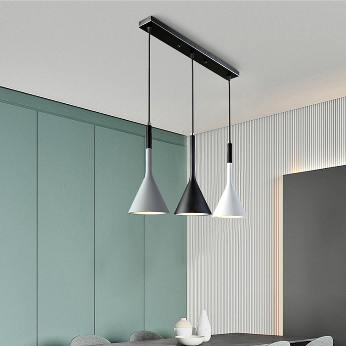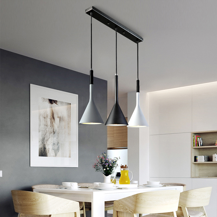 Ray đèn bằng kim loại sơn tĩnh điện, choá đèn bằng nhôm hình phễu có tác dụng hội tụ ánh sáng cao ,thường được sử dụng vào vị trí bàn ăn,