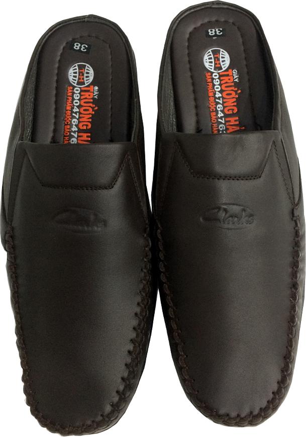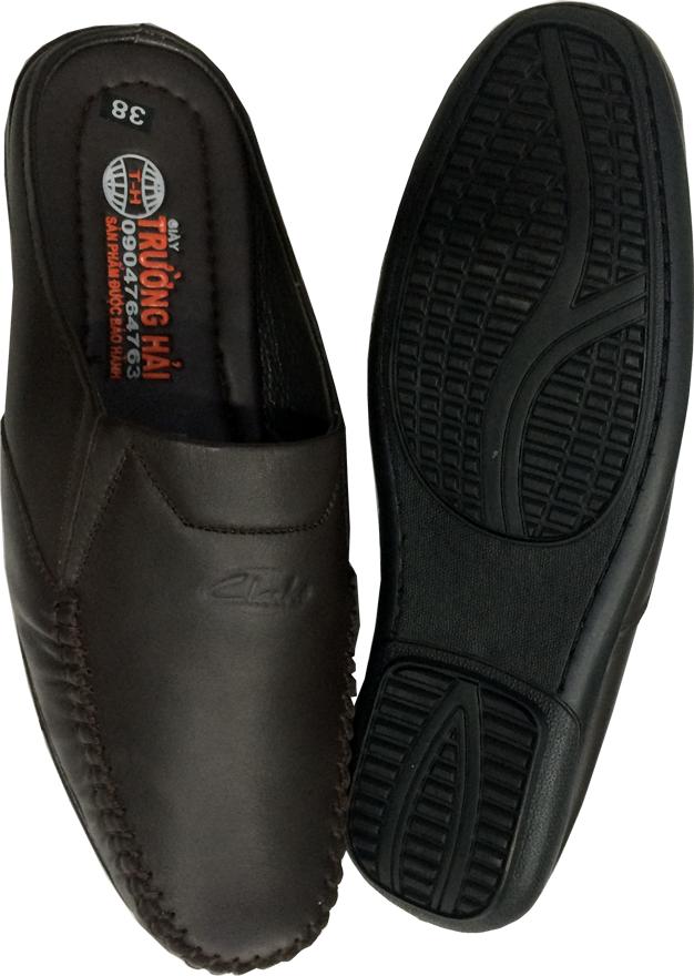 Dép bít mũi màu nâu Trường Hải da bò thật