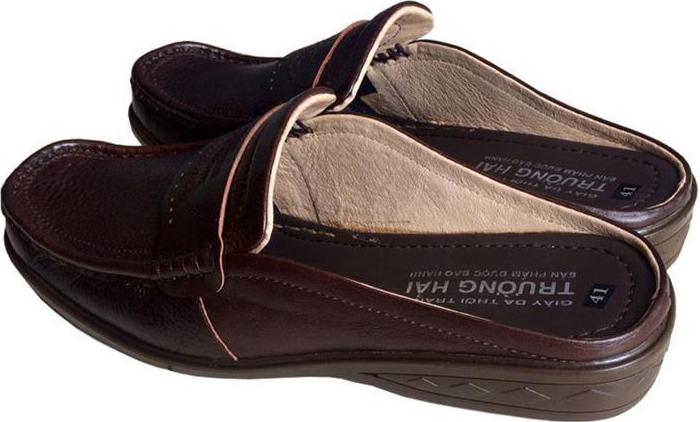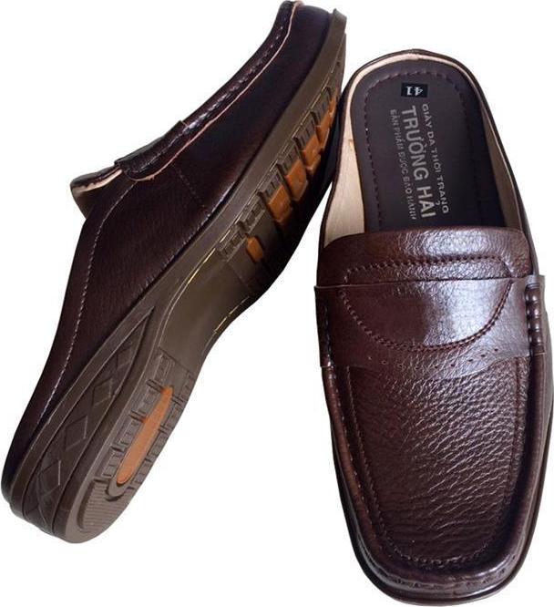 ✨Dép bít mũi nam Trường Hải da bò cao cấp đế cao su màu nâu bò BM217