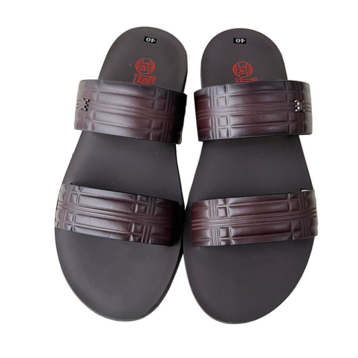 Dép quai ngang nam TRường Hải hai dây da bò màu nâu