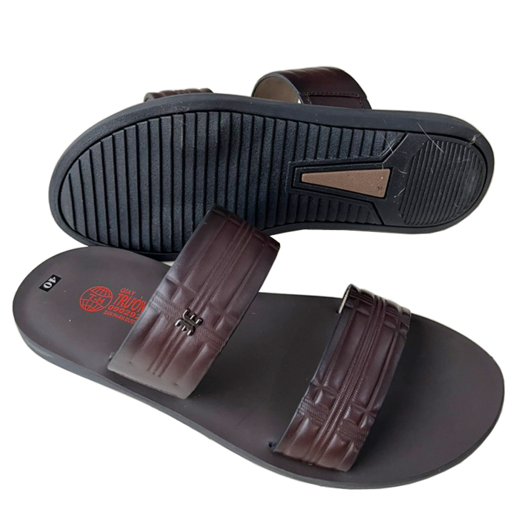 ✨Dép da nam quai ngang 2 dây Trường Hải màu nâu da bò mặt đúc chịu nước QN153
