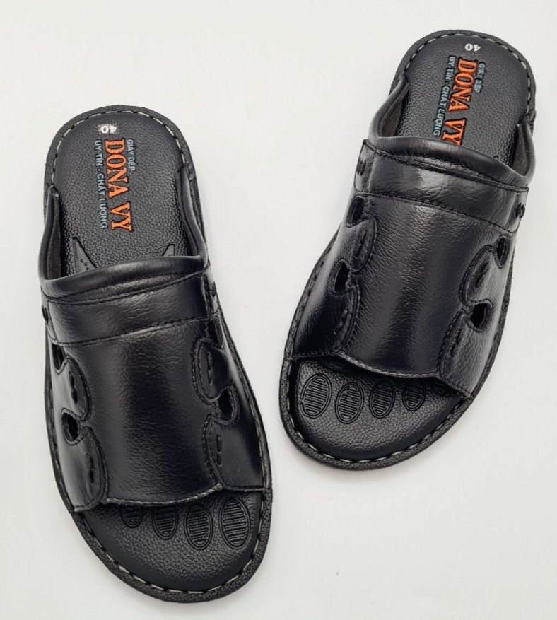 DÉP NAM DA BÒ THẬT 100% DONAVY CAO CẤP ĐẾ CAO SU CAO 3CM, MAY QUAI XUỐNG ĐẾ CHẮC CHẮN, MẶT ĐẾ IN HÌNH 05 NGÓN CHÂN RẤT BÁM CHÂNDONAVYKHAUVIEN Chất liệu: Da bò thật 100% da bò tự nhiên Đế cao su tốt đi siêu êm, chống chơn, trượt. Da được may vào đế cẩn thận, đẹp bao đi nước Hàng đảm bảo giống hình