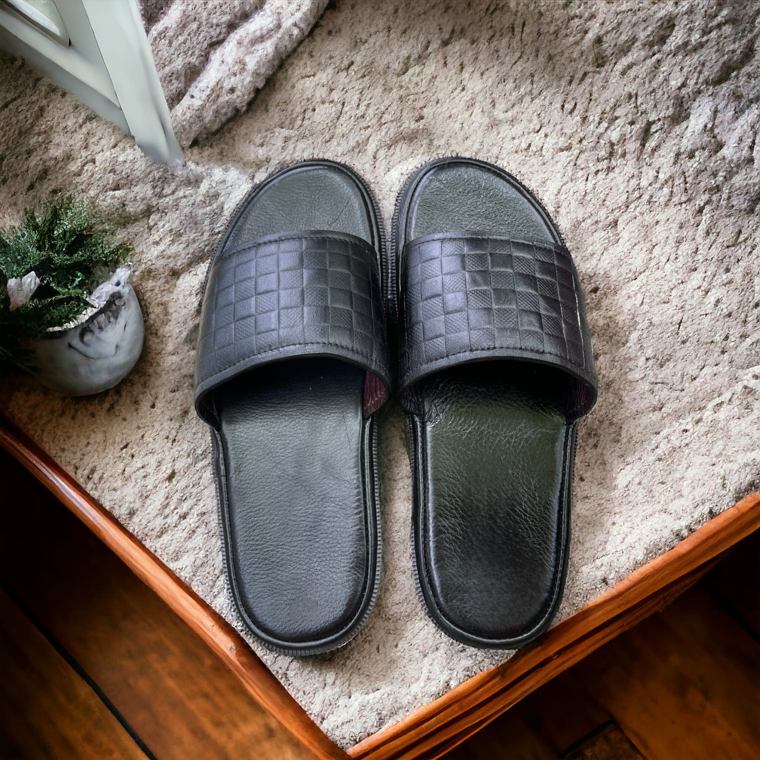 Dép Da Nam - Lịch Lãm & Thoải Mái Mỗi Ngày - Chất liệu cao cấp: Sử dụng da tổng hợp chất lượng, mềm mại, bền bỉ theo thời gian, mang lại cảm giác êm ái và thoáng khí cho bàn chân. - Thiết kế sang trọng: Tông màu đen lịch lãm, kết hợp với đường chỉ may tinh tế và logo kim loại nổi bật – tôn lên vẻ nam tính, trưởng thành. - Đế chống trượt: Đế EVA siêu nhẹ, độ đàn hồi tốt, kết hợp vân đế tăng độ ma sát – an toàn khi di chuyển trên nhiều bề mặt. - Form ôm chân: Thiết kế bản quai ngang rộng, ôm gọn bàn chân nhưng không gây bí bách, dễ xỏ vào – thích hợp cho người trung niên và người lớn tuổi. - Ứng dụng đa năng: Phù hợp sử dụng trong nhà, đi dạo phố, đến văn phòng hoặc các dịp gặp gỡ thân mật. Lựa chọn tuyệt vời cho quý ông yêu thích sự thoải mái, đơn giản nhưng vẫn giữ được nét tinh tế trong từng bước chân.