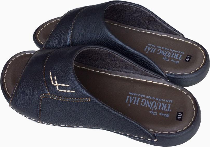 ✨Dép nam quai ngang Trường Hải da bò thật mềm mại may thủ công chắc chắn tỉ mỉ đế cao su không trơn QNN074
