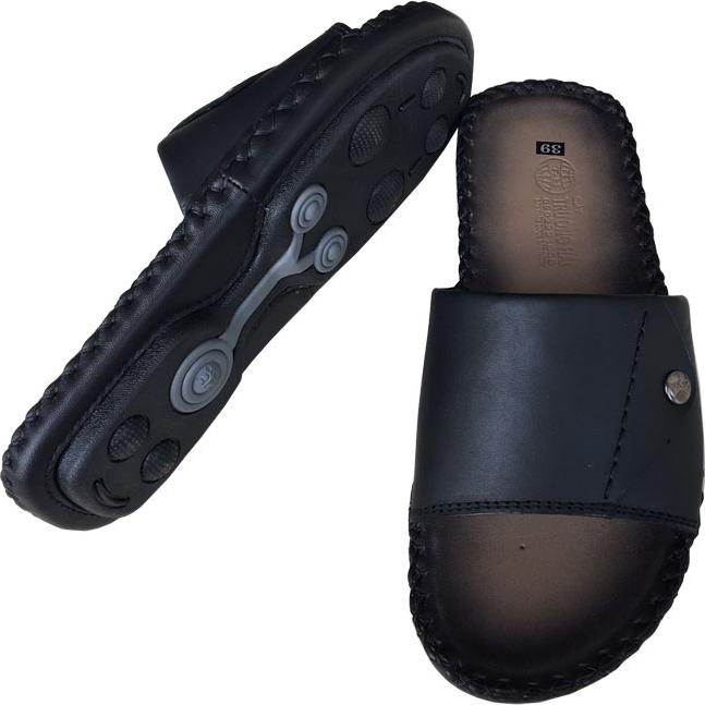 Mặt dép được làm bằng da bò thấm hút mồ hôi không hôi chân. Đặc biệt dép nam quai ngang được thiết kế với lớp da âm xuống đế tạo nên sự độc đáo, êm bền