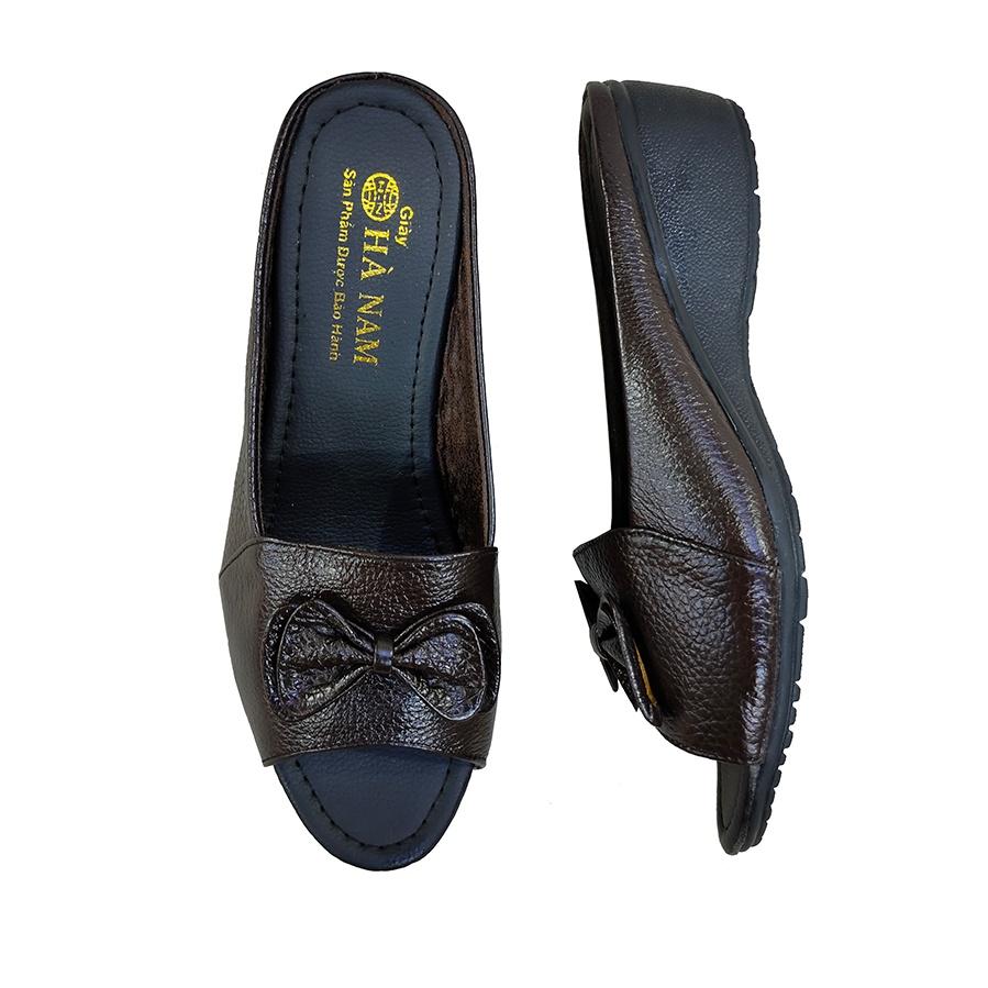 Dép Nữ Quai Ngang Đế Xuồng HÀ NAM Da Bò Thật Cao Cấp DNU2138