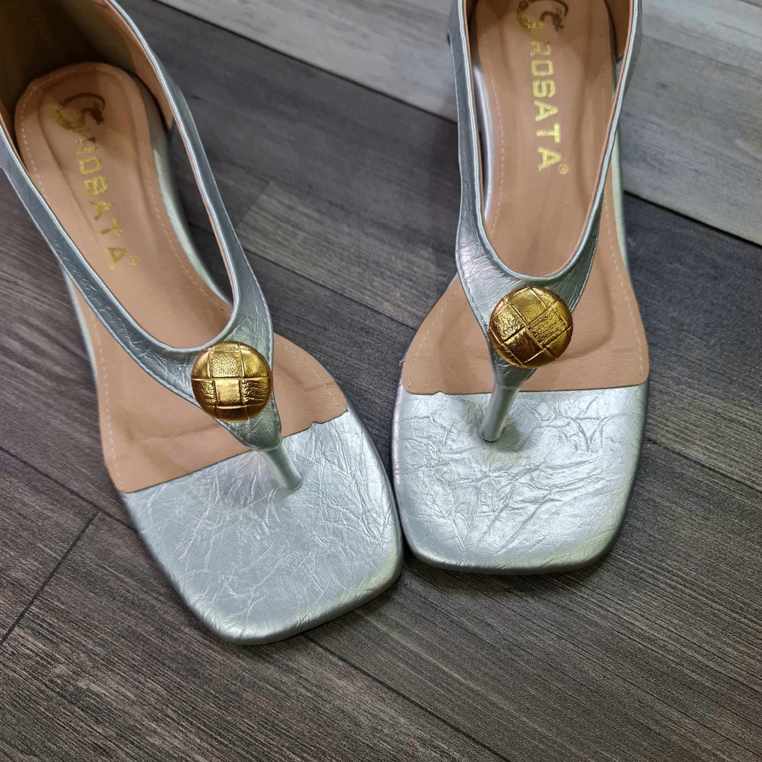 RO725 – Dép guốc nữ kẹp ngón bản lớn, thiết kế nổi bật nâng tầm phong cách Gây ấn tượng từ cái nhìn đầu tiên với phần bản kim loại sáng bóng phối hình oval