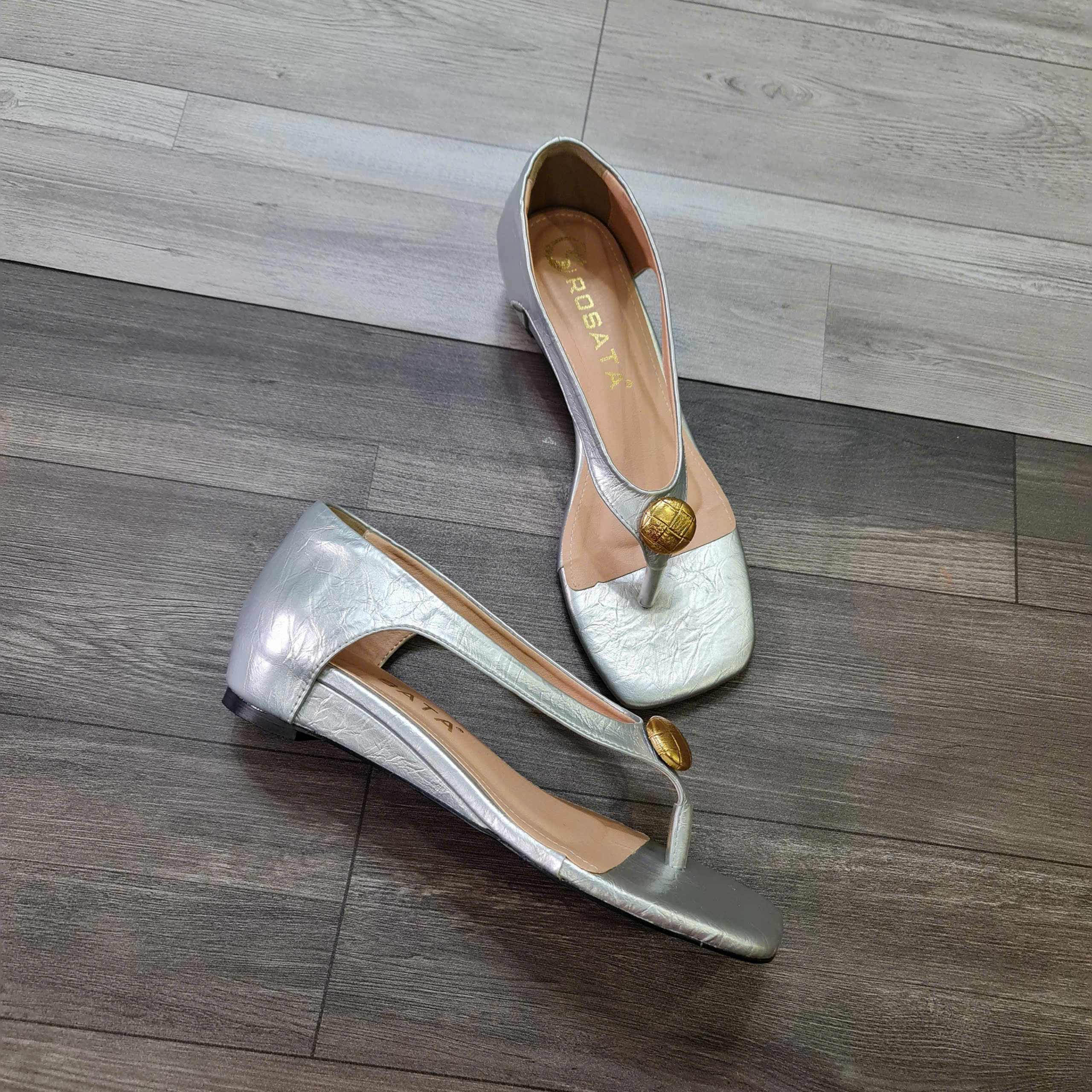 MÔ TẢ SẢN PHẨM: Dép nữ xỏ ngón, bít gót, đế xuồng ROSATA RO727 - 3p - Bạc, Hồng - BKSTORE