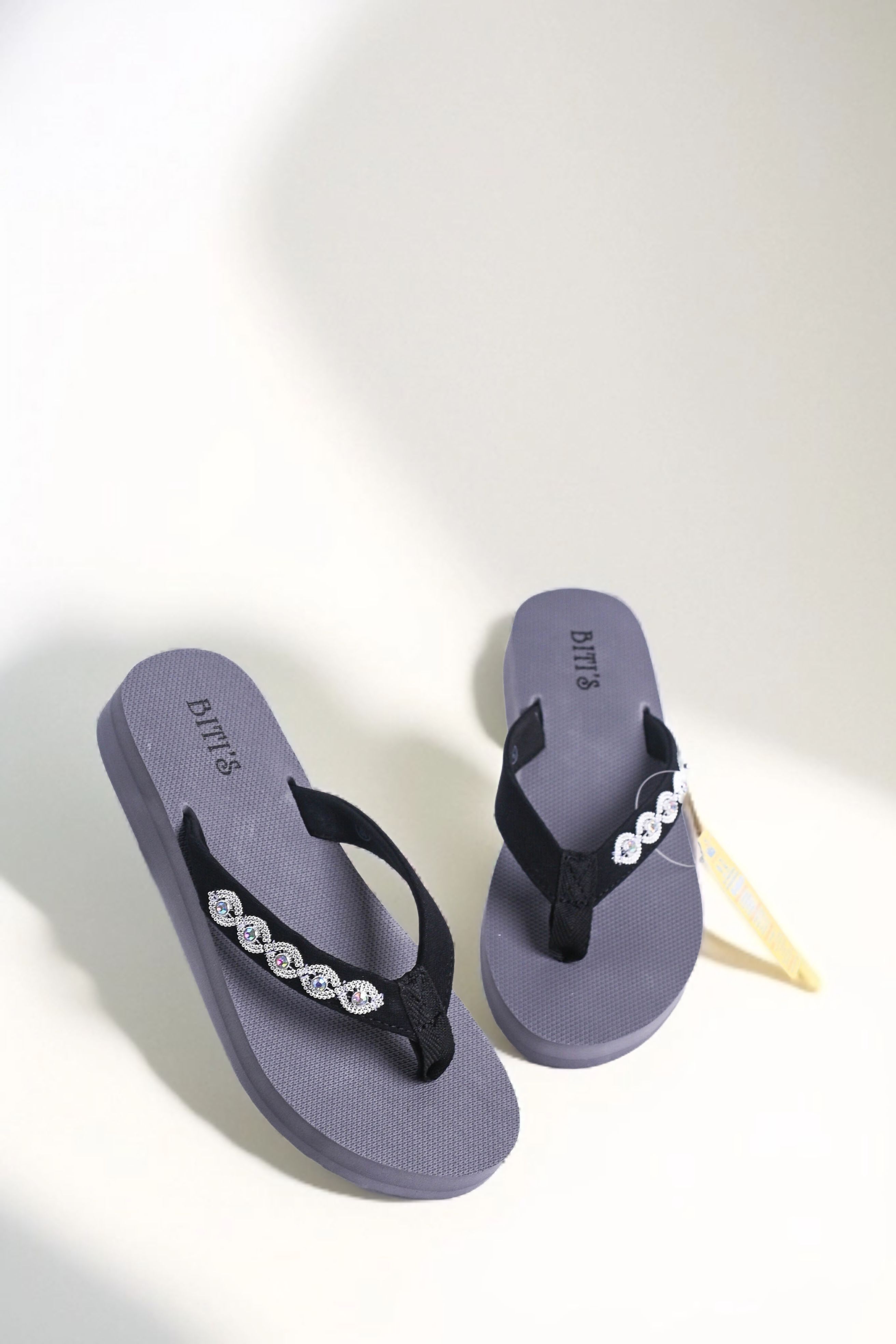 Đế xám quai đen đính đá(B)