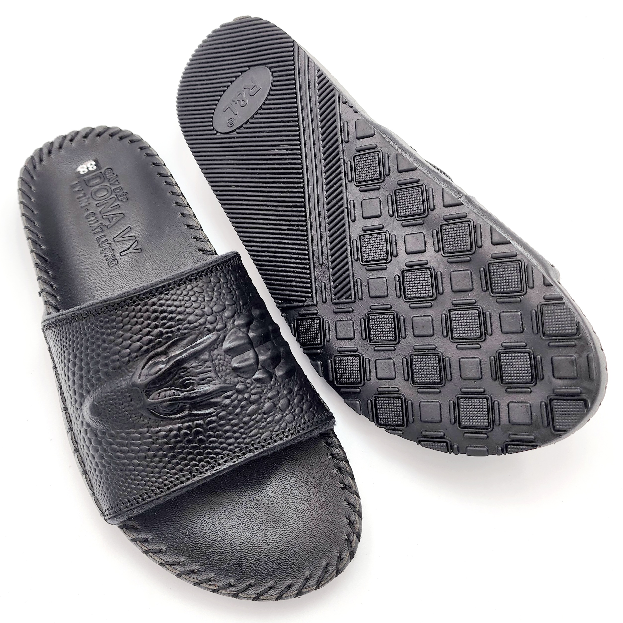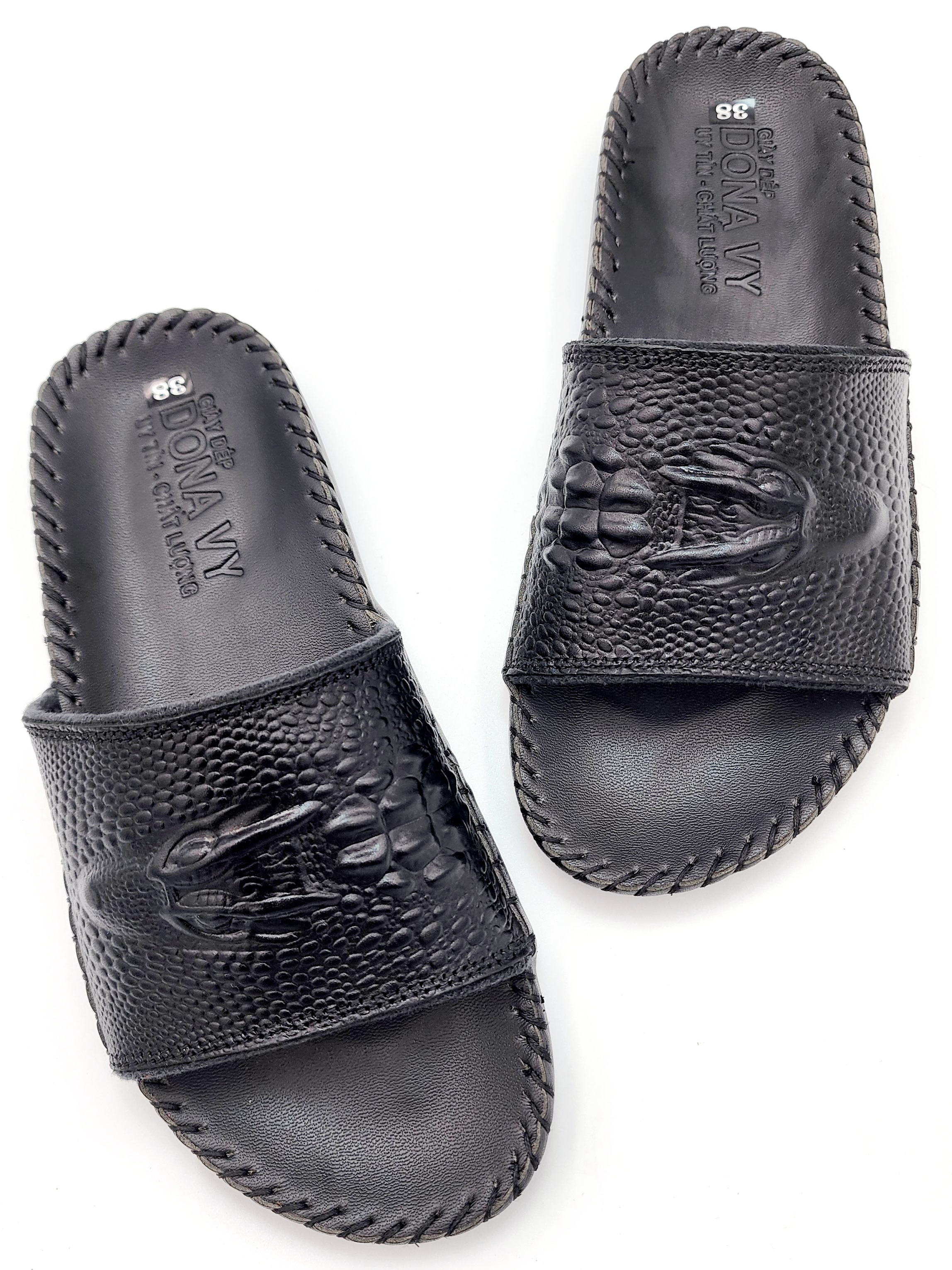 Mô Tả Sản Phẩm Dép Quai Ngang Nam Da Bò Thật 100%, Bản Cá Sấu Nổi Bật Khâu Quai Và Đế Rất Chắc Chắn DCSL Chất liệu: Da bò thật 100% da bò tự nhiên Đế cao su tốt đi siêu êm, chống chơn, trượt. Da được may vào đế cẩn thận, đẹp bao đi nước Hàng đảm bảo giống hình