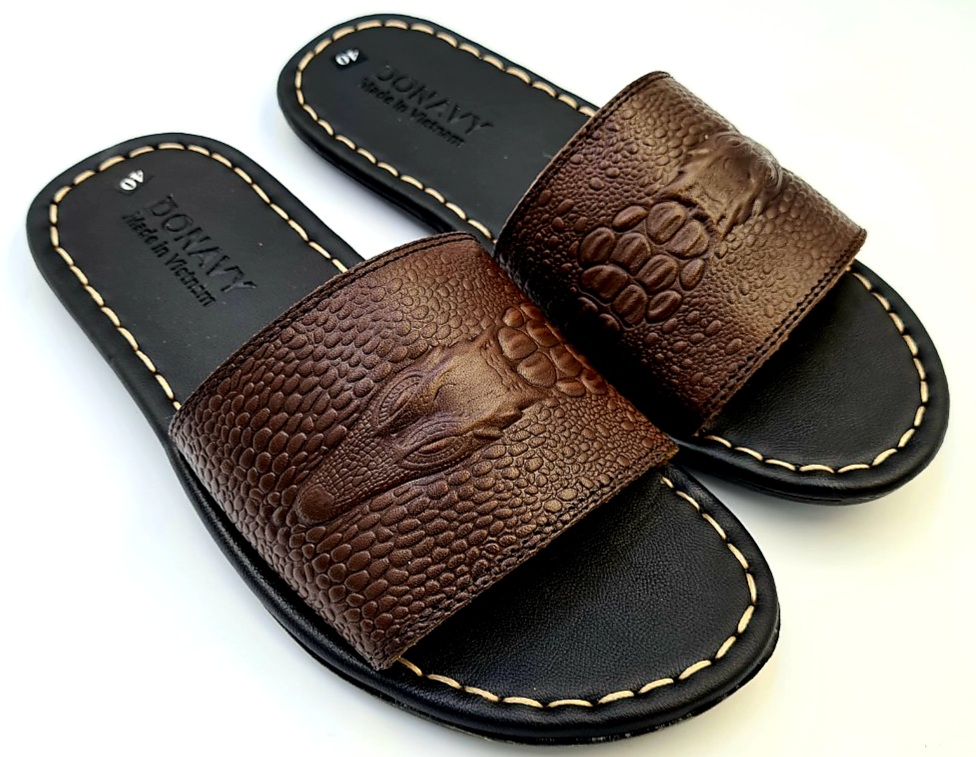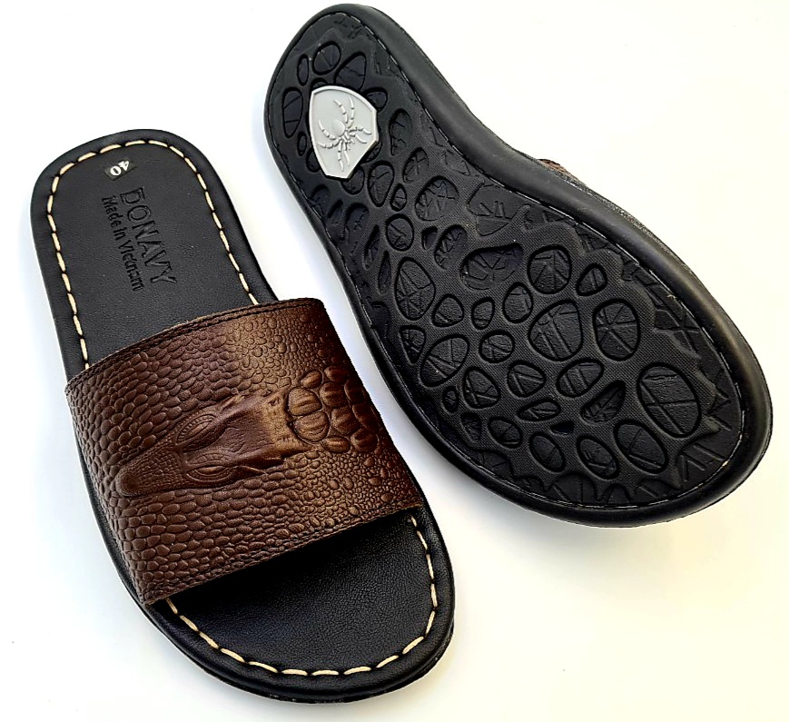 Dép Quai Ngang Nam Da Bò Thật 100%,DONAVY Kiểu Đầu Cá Sấu Đi Rất Nhẹ Và Êm DCSDN Chất liệu: Da bò thật 100% da bò tự nhiên Đế cao su tốt đi siêu êm, chống chơn, trượt. Da được may vào đế cẩn thận, đẹp bao đi nước Hàng đảm bảo giống hình