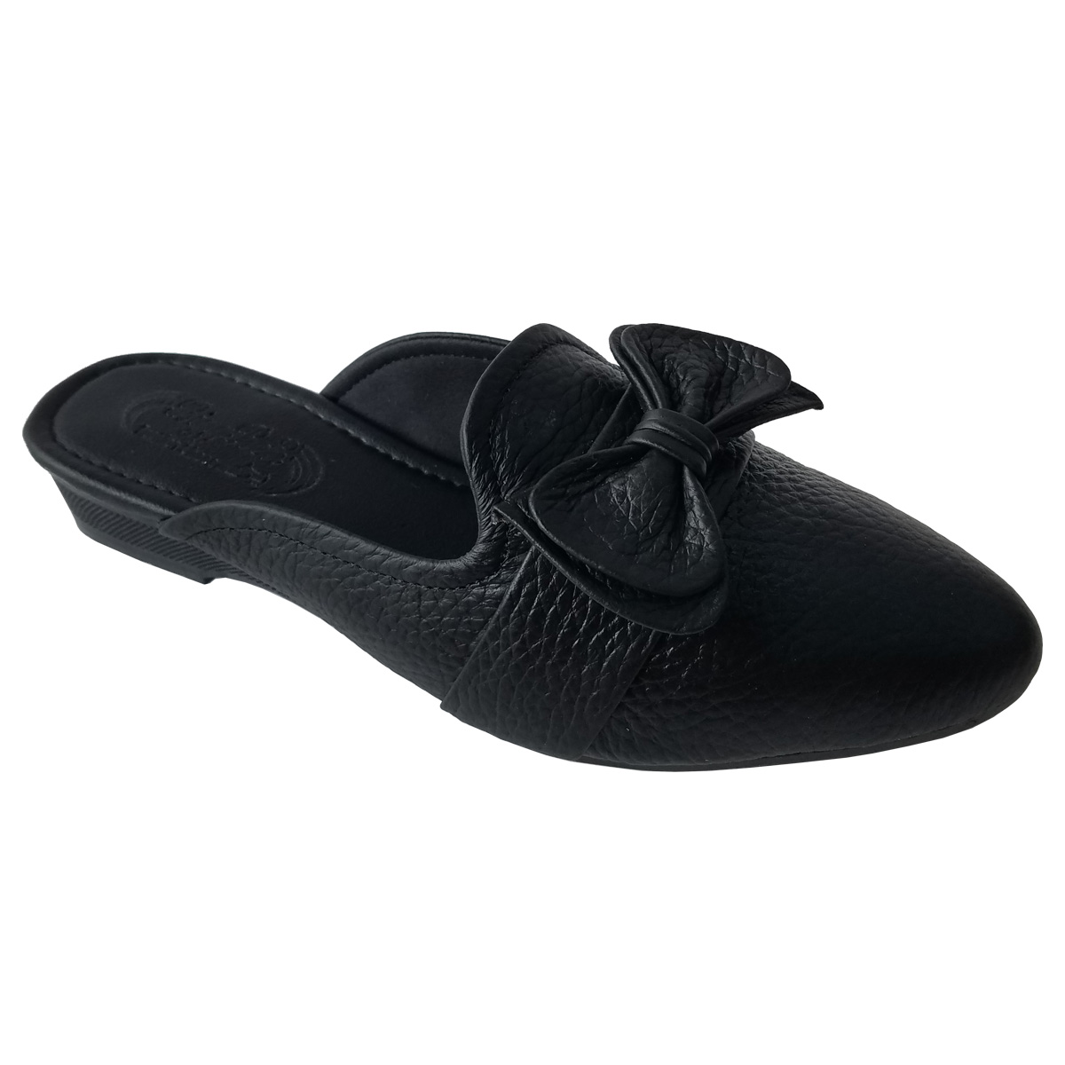 Giày Sục Nữ Giày Cao Gót 3Cm Da Bò Thật Siêu Mềm Cao Cấp Evelynv 3P2916 (Đen)