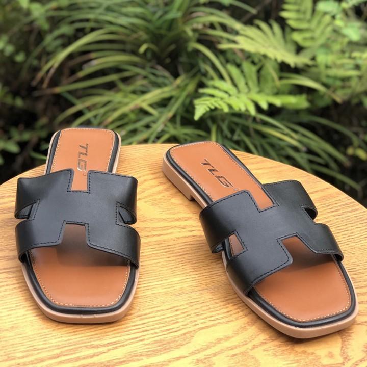 ✨Dép Thời Trang Nữ Da PU Cao Cấp Quai Ngang Chũ H Lót Dép Mềm Êm 21307