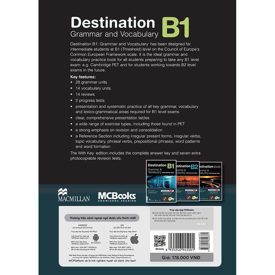 Destination B1 cung cấp từ vựng và ngữ pháp tiếng Anh cần thiết nhất dành cho người học đang có ý định thi các kỳ thi ở Level B1 theo khung tham chiếu châu Âu và mong muốn cải thiện năng lực tiếng Anh của bản thân.
