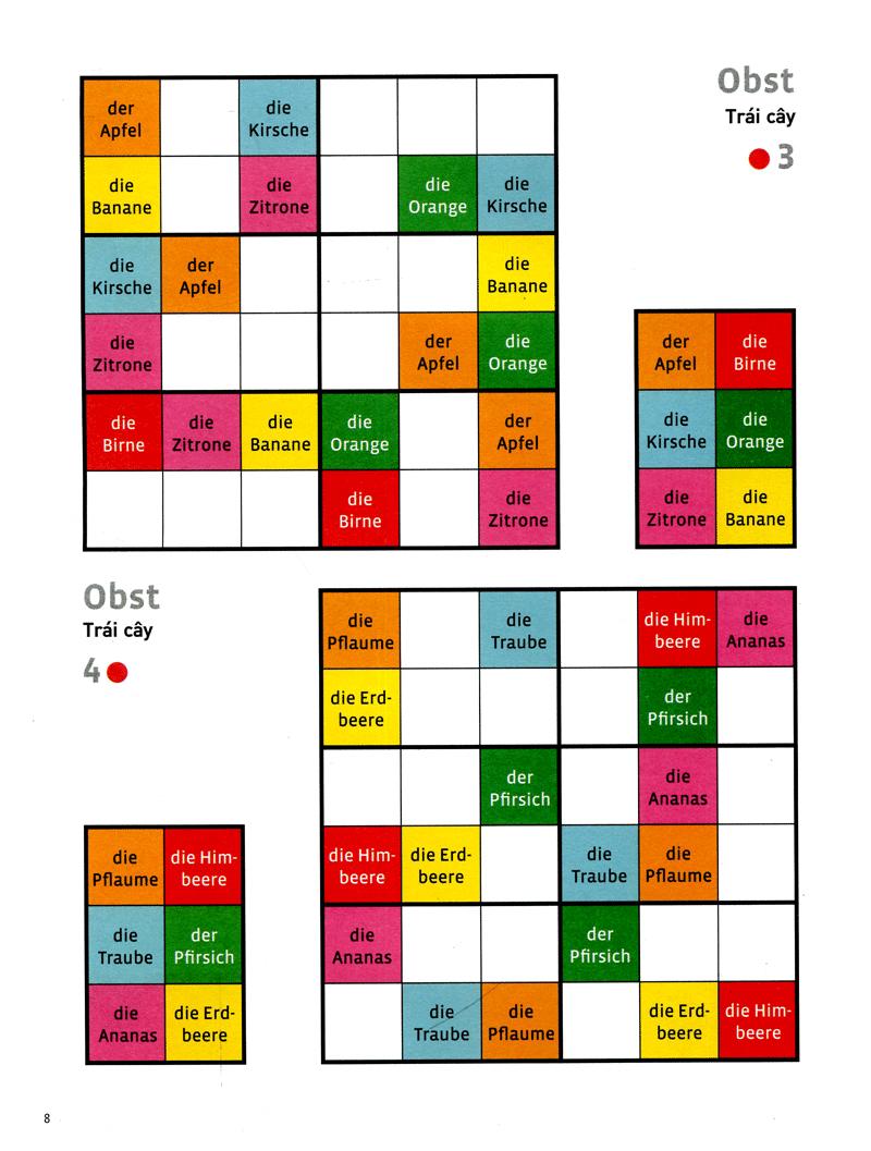 Quyển sách Deutsch Wodoku: Vui Học Từ Vựng Với Ô Chữ Sudoku sẽ mang đến cho bạn niềm hứng thú khi học từ vựng theo cách khác biệt. Bạn có thể học khoảng 1000 từ vựng tiếng Đức thuộc nhiều chủ đề (nghề nghiệp, quần áo, thời tiết, máy vi tính,…), ôn lại từ và củng cố khả năng nhớ từ bằng cách giải ô chữ từ vựng Sudoku