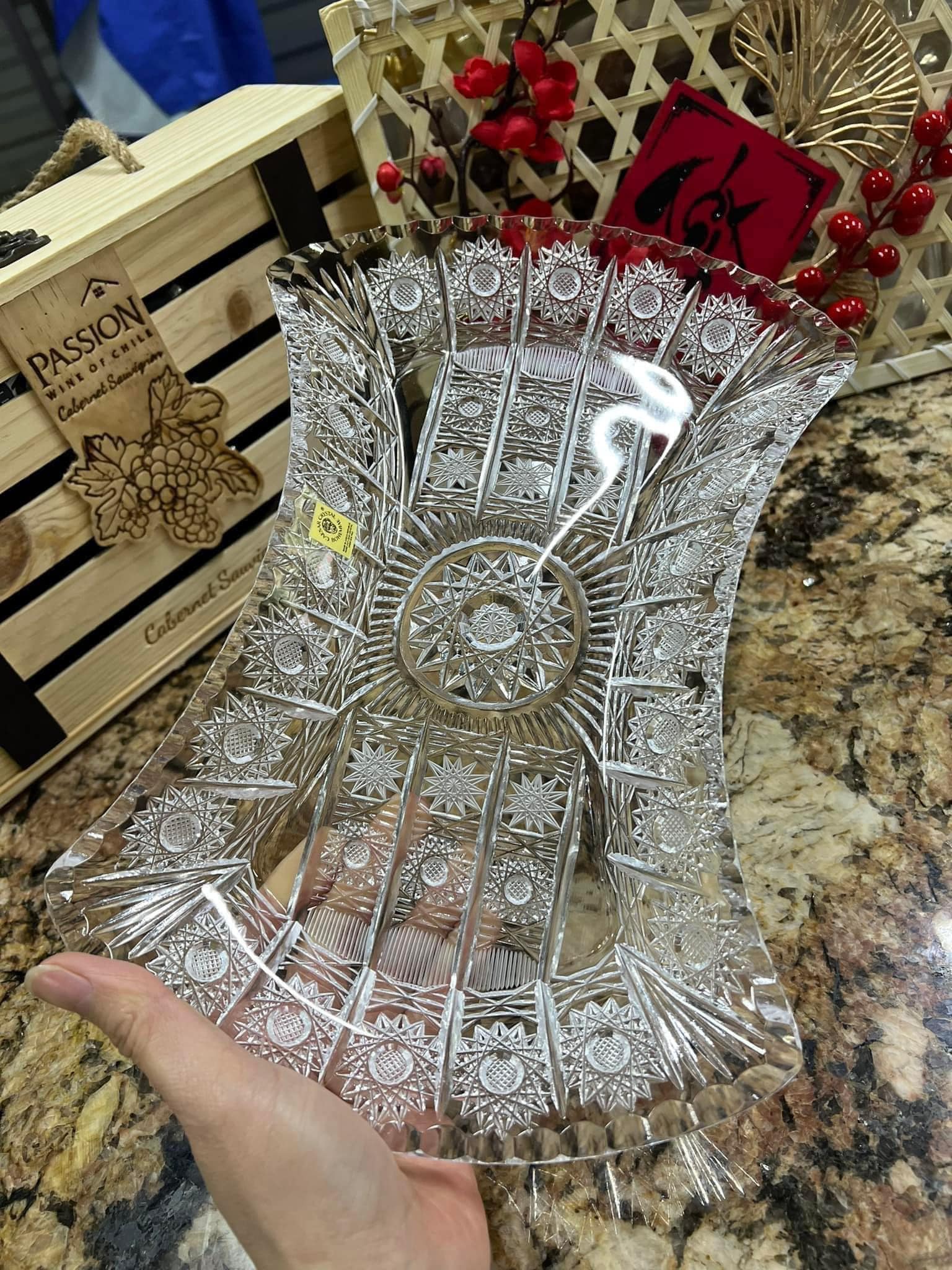 ✨Đĩa pha lê mài Bohemia 30cm hình eo Hàng chính hãng
