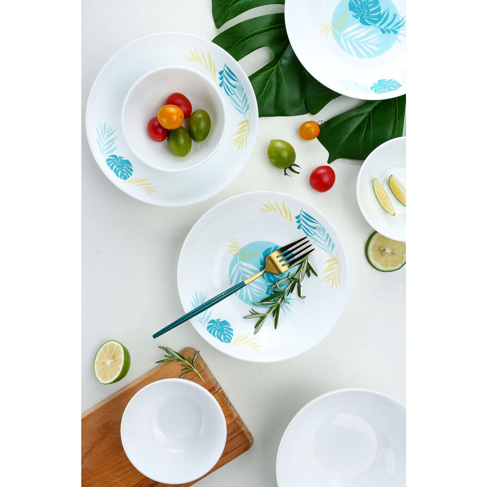 - Quy cách: 6 đĩa / bộ. - Kích thước: 19cm. - Chất liệu: Thuỷ tinh opal, cường lực, kháng vỡ. - Xuất xứ: Pháp. - Đặc tính nổi bật: cường lực, kháng vỡ nhiều