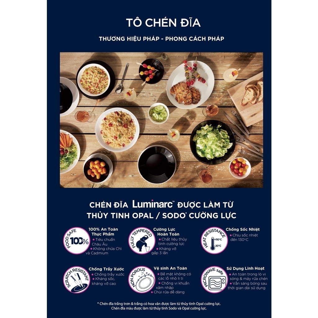 Được làm từ chất liệu thuỷ tinh Opal cường lực, kháng vỡ gấp ba lần với nhiều màu sắc sang trọng phù hợp với mọi không gian sống. Từ các gia đình truyền thống, đến các gia đình trẻ hiện đại hay từ không gian gia đình ấm cúng đến các bàn tiệc sang trọng tại các nhà hàng bật nhất. Đặc biệt với độ kháng vỡ gấp 3 lần so với thuỷ tinh thông thường và nhiều lần so với các sản phẩm sành sứ, bộ sưu tập chén thuỷ tinh sẽ mang đến hiệu quả kinh tế cho gia đình.