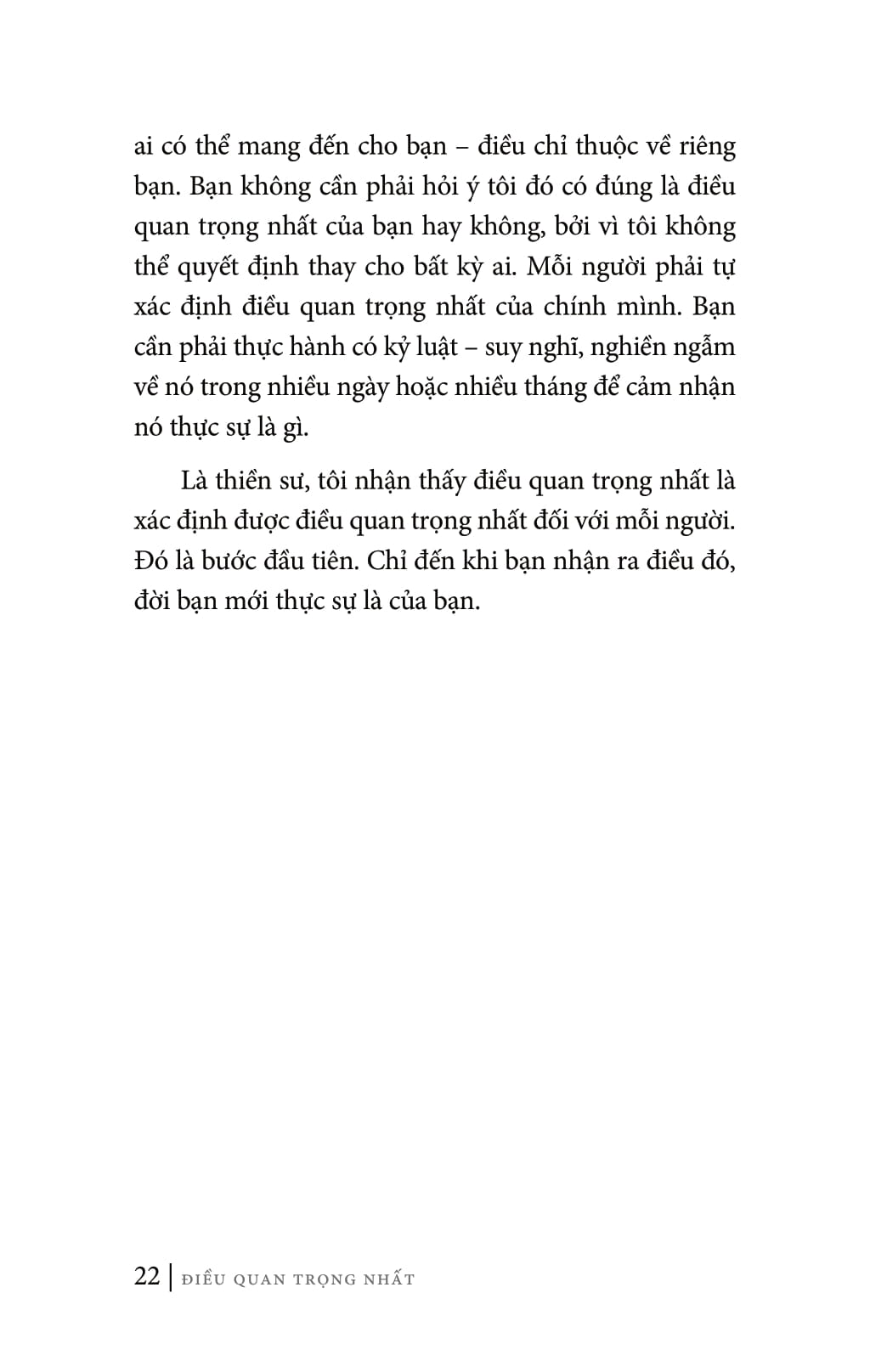 Cuốn sách The Most Important Thing: Discovering Truth at The Heart of Life này sẽ không chỉ giúp bạn chiêu đãi và nâng cao tinh thần của mình, mà còn cung cấp cho bạn phương tiện để đi sâu vào trải nghiệm trực tiếp về sự hiện hữu, từ đó bạn sẽ nếm được vị của phúc lành nhờ biết ưu tiên cho điều quan trọng nhất.