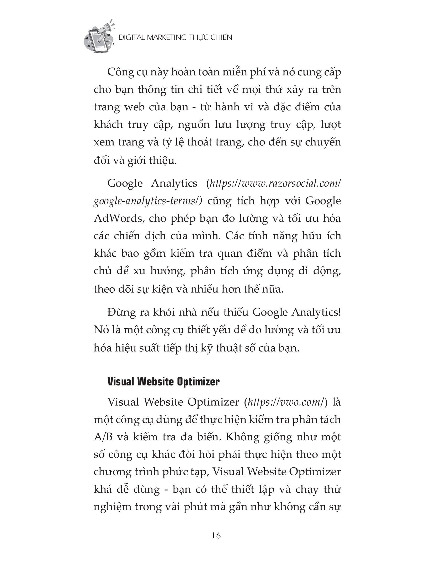 Cuốn sách ‘Digital Marketing Thực Chiến’ là tập hợp những ý tưởng hay nhất từ những tác giả giỏi nhất trên thế giới về các chủ đề truyền thông xã hội, truyền thông kỹ thuật số, tiếp thị và công nghệ. Trong cuốn sách này, các nhà tiếp thị kỹ thuật số trên thế giới chia sẻ thông tin chi tiết về cách họ phát triển doanh nghiệp của m.ình bằng kỹ thuật số.