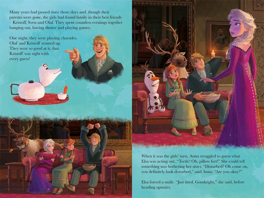 Join Anna, Elsa and their friends as they explore magical scenes.