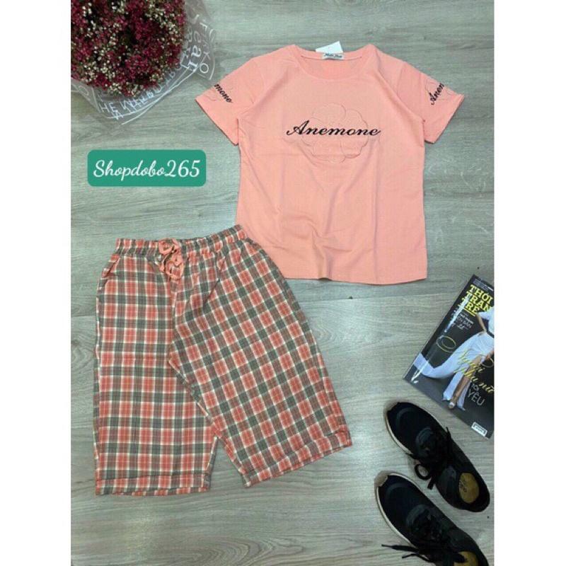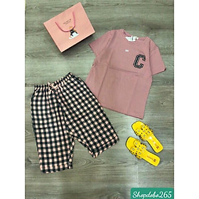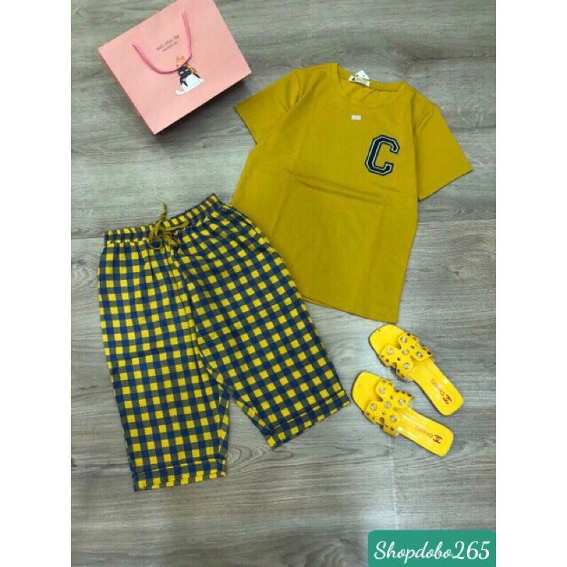 Mua tại TiktokĐồ bộ nữ,đồ ngủ mặc nhà lửng áo vải thun cotton phối quần kaki thời trang.