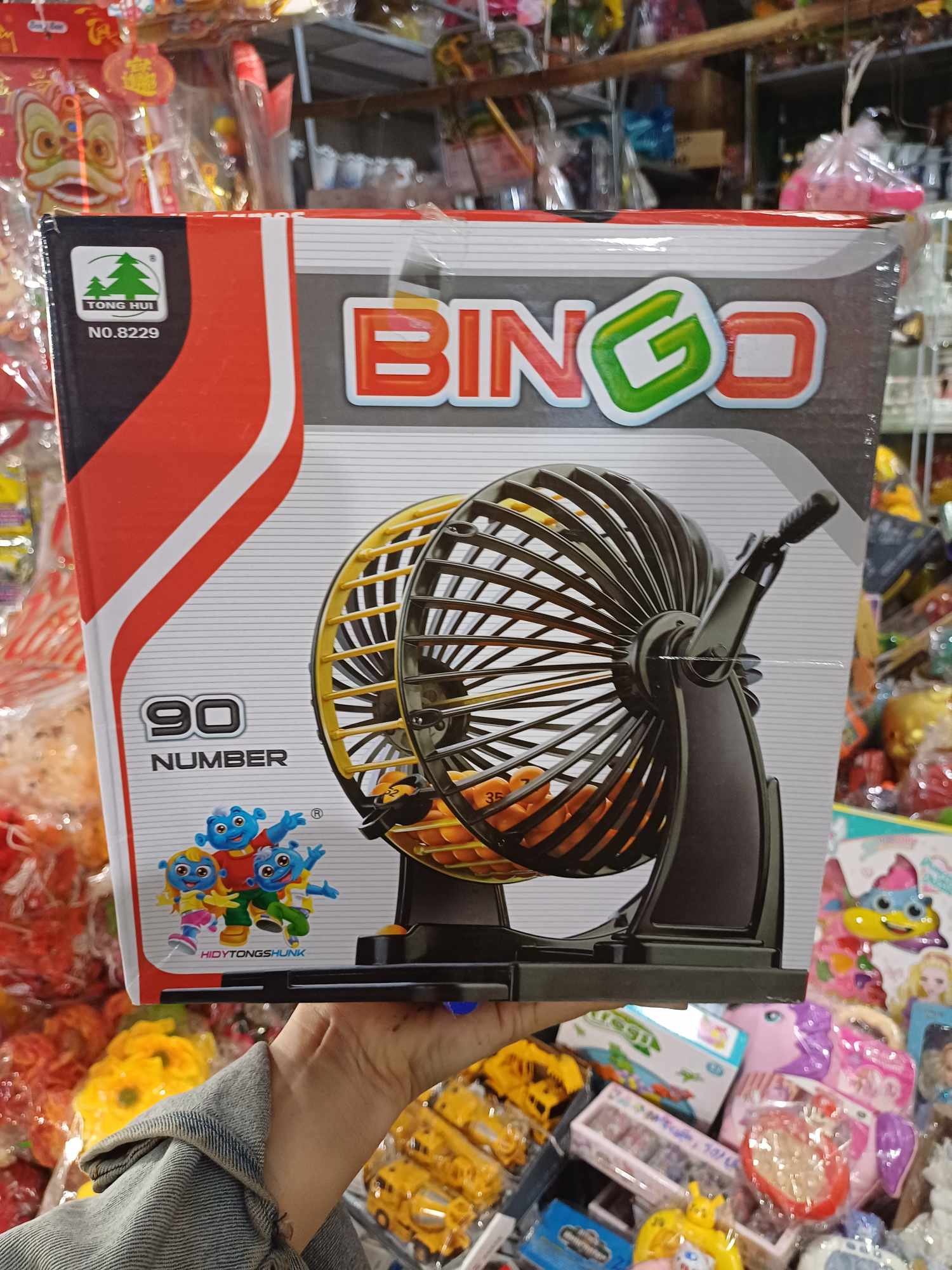 Hộp bingo là lô tô quay số , bạn không cần bóc từng số mà chỉ cần quay là các con số sẽ lần lượt chạy ra . Bộ này có 90 số , không