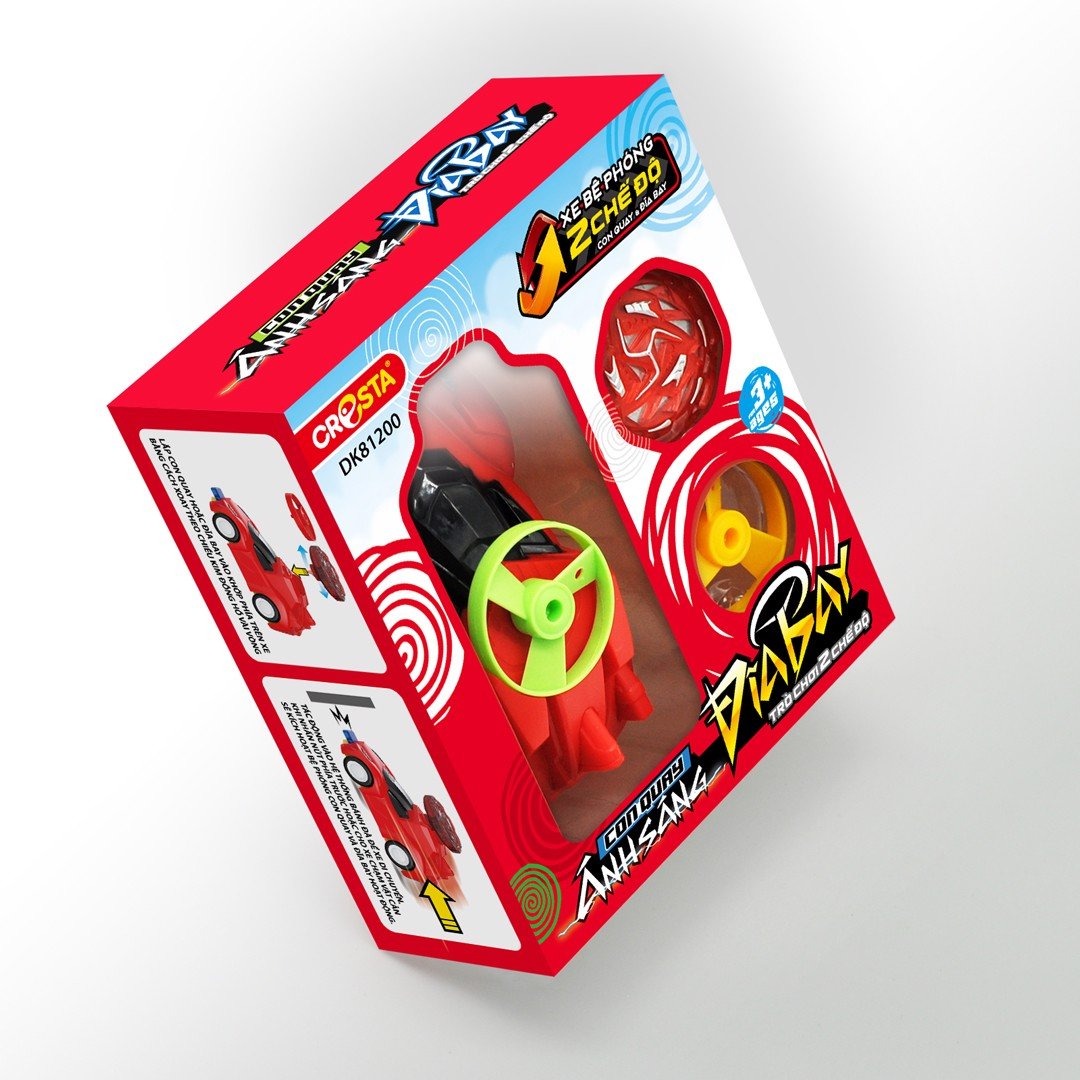 Mua tại TiktokCon quay ánh sáng - Đĩa bay (Đỏ), DK 81200 Đồ chơi con quay là sản phẩm đồ chơi cho bé được mô phỏng theo nội dung của các bộ phim hoạt hình hấp dẫn đang trình chiếu, nên các bé đều có tâm lý mong muốn sở hữu một món đồ chơi đầy ma lực này để giải trí sau những giờ học tập căng thẳng. Ngoài con quay nhiều màu sắc, sản phẩm còn kết hợp thêm các đĩa bay tạo thêm phần hấp dẫn khi chơi. Với kết cấu chắc chắn được thiết kế bằng nhựa ABS và kim loại đúc giúp con quay chịu lực va đập tốt, khi con quay chuyển động có đèn led phát sáng tạo sự hấp dẫn, bắt mắt.Khuôn viền được thiết kế không góc cạnh đảm bảo độ an toàn cho bé khi chơi. Phụ kiện chính kèm theo là chiếc ô tô mô hình được thiết kế bằng nhựa ABS nguyên khối, chịu được lực va chạm mạnh và ở mũi xe đều có các nút bật khi có lực tác động giúp con quay và đĩa bay vút lên cao. Trên mỗi bìa hộp đều có hướng dẫn sử dụng, cách chơi được mô tả chi tiết bằng tiếng Việt. Trò chơi mang lại các lợi ích cho bé như: - Tăng cường thị giác linh hoạt - Bồi dưỡng khả năng tập trung - Kích thích trí tưởng tượng - Rèn luyện kỹ năng vận động Sản phẩm đạt tiêu chuẩn: