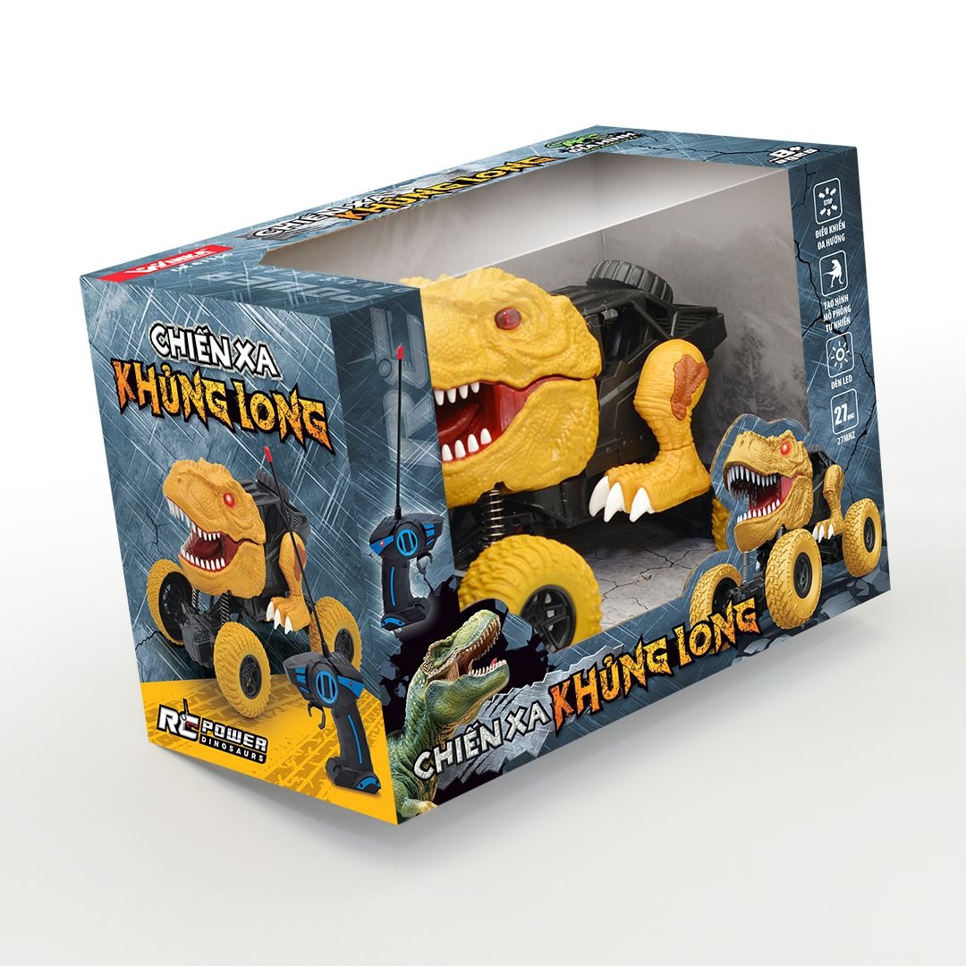 Xe địa hình điều khiển từ xa - Chiến xa khủng long DK 81156 Được thiết kế giống với mô hình chú khủng long dũng mãnh, với 4 chức năng: Tiến - lùi - rẽ trái
