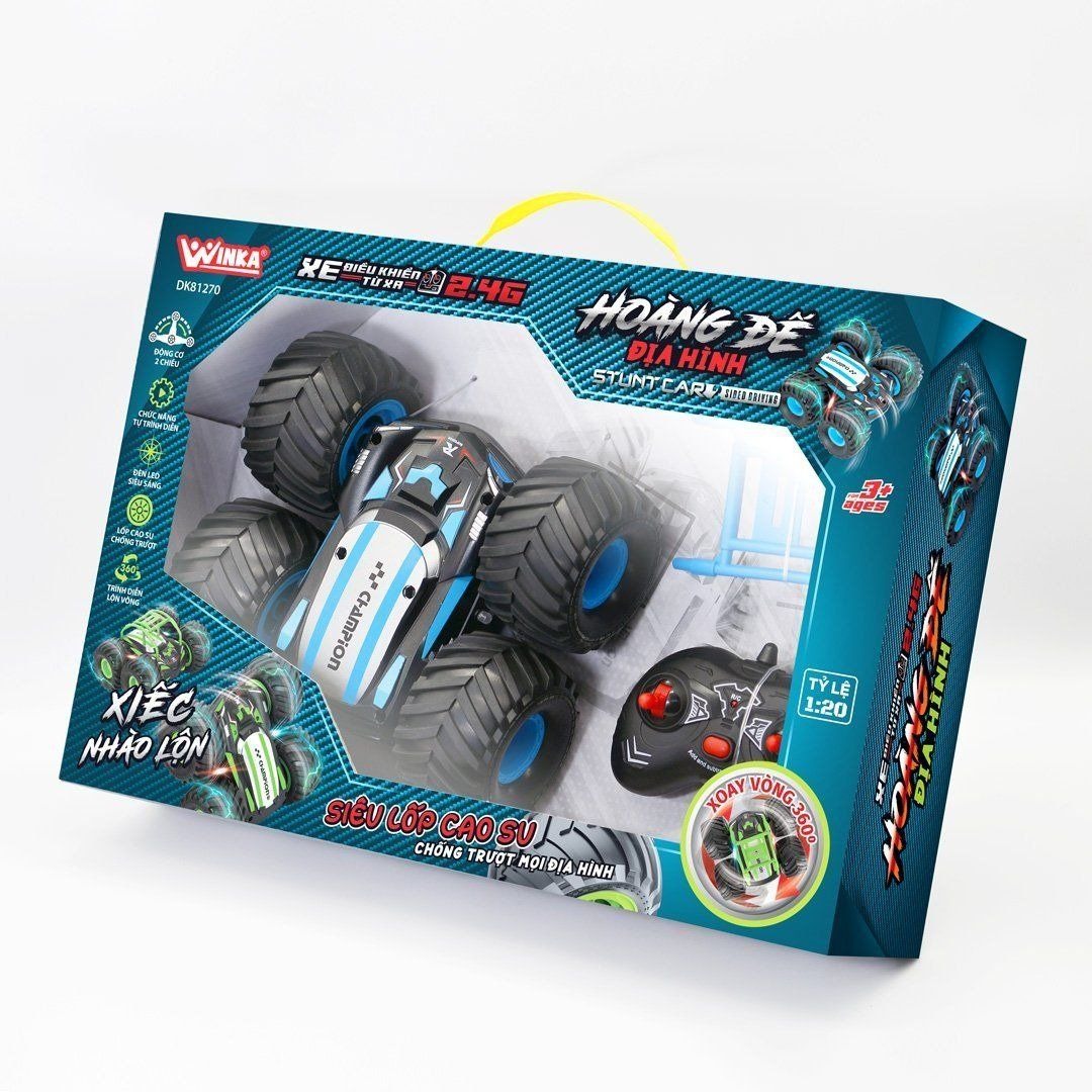 XE ĐIỀU KHIỂN TỪ XA 2.4G - HOÀNG ĐẾ ĐỊA HÌNH Đồ chơi xe điều khiển được thiết kế với mô hình xe đua, chất liệu hợp kim độ bền cao, lốp cao su to và chắc chắn, gờ rãnh dầy chống trơn trượt chinh phục mọi địa hình. Xe được thiết kế với màu sắc khỏe khoắn, bắt mắt kèm đèn led phát sáng , chức năng trình diễn, nhào lộn 360 độ,đem đến thích thú cho bé khi chơi. Remote điều khiển với nhiều tính năng, dễ dàng thao tác, nhanh nhạy trong khoảng cách 10-15m. Thông tin sản phẩm: