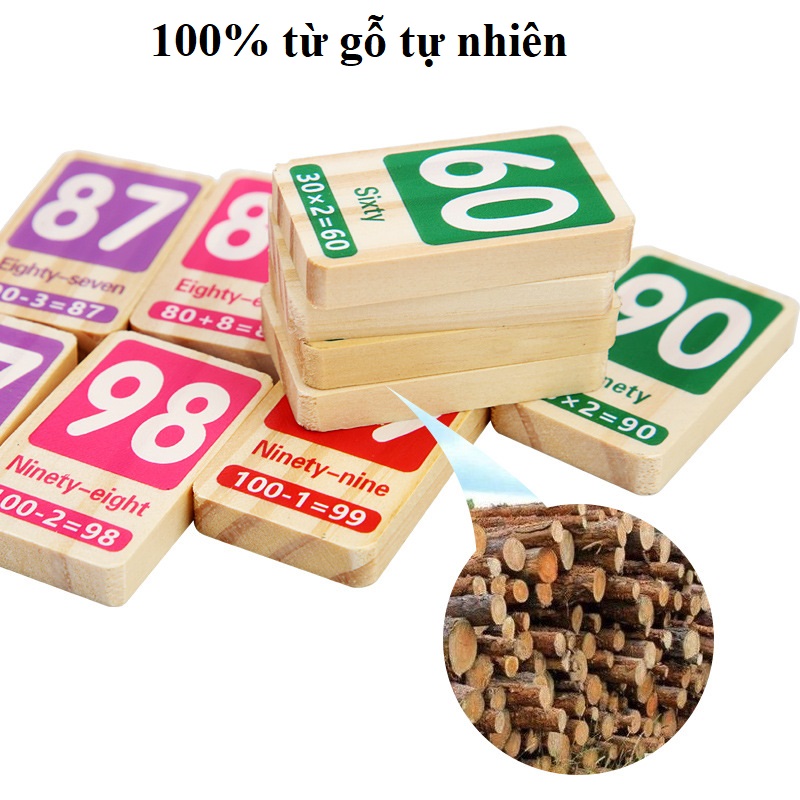 - Domino số học (Từ 1-100). Bộ đồ chơi Domino số học dành cho bé yêu là sản phẩm đồ chơi giáo dục sở hữu thiết kế đơn giản, được làm từ chất liệu gỗ tự nhiên cao cấp đã qua xử lý.