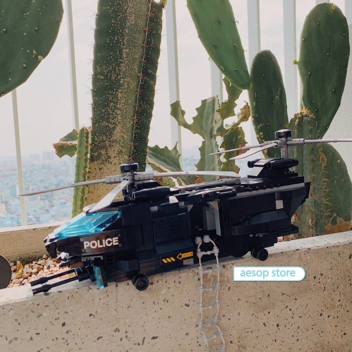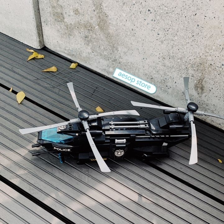 - Tăng khả năng sáng tạo và trí tưởng tượng với đồ chơi lắp ráp Đồ chơi có thể lắp ráp tạo thành mô hình Máy bay trực thăng như hướng dẫn nhưng cũng có thể phối hợp cùng những bộ lắp ráp khác để xây dựng thế giới giả tưởng theo trí tưởng tượng, khả năng sáng tạo của người chơi. Mang đến sự mới lạ, hứng thú. Bộ lắp ráp mô hình Mô hình Máy bay trực thăng Diều hâu đen thuộc dòng sản phẩm Police Battle Force. Sưu tập trọn bộ bé có thể tự kiến tạo một thế giới riêng, bối cảnh cho những câu chuyện lý thú Chất liệu nhựa ABS an toàn cho trẻ