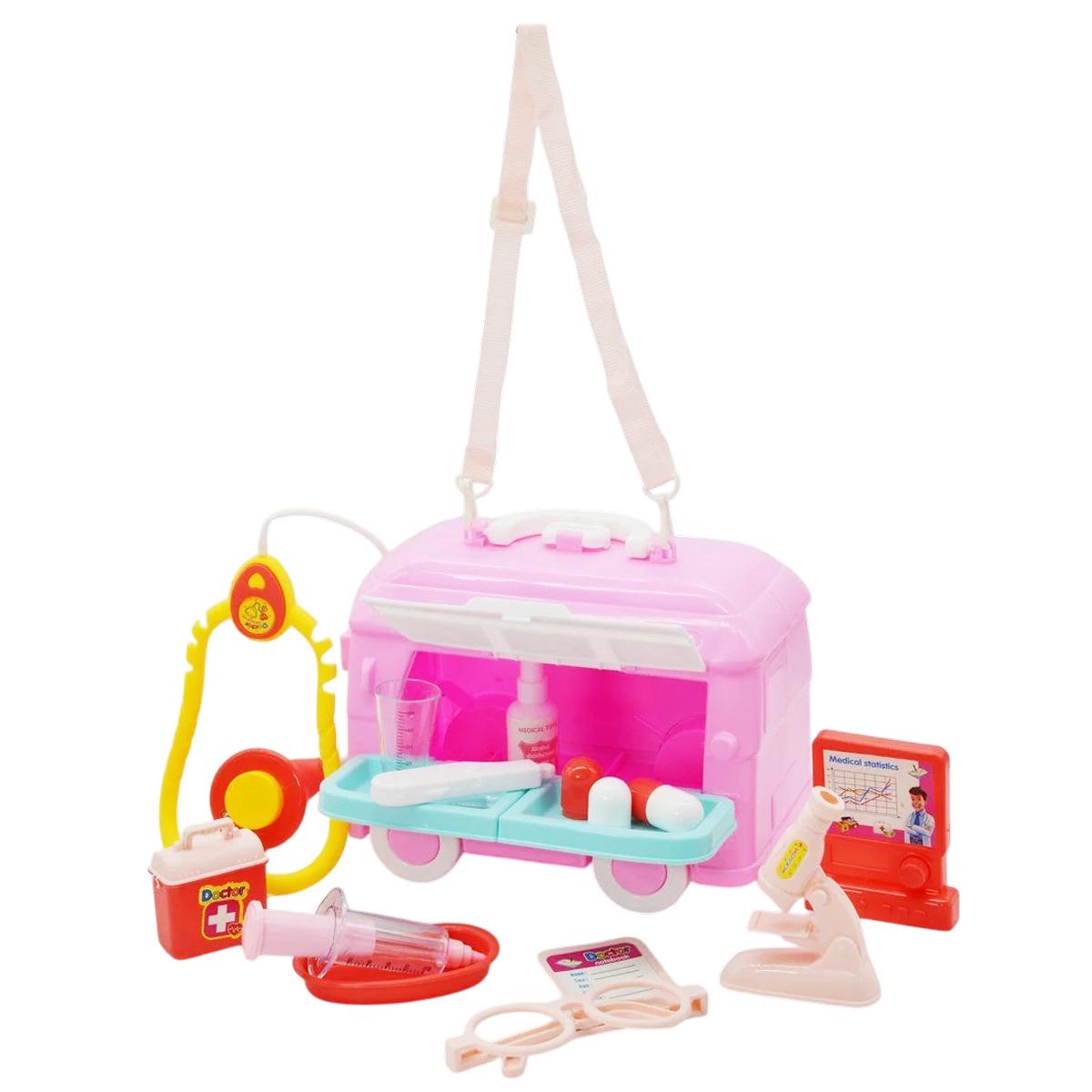 Bộ đồ chơi là sản phẩm đồ chơi trẻ em được thiết kế có mô hình chiếc xe ngộ nghĩnh, mô phỏng chiếc xe khám bệnh lưu động để phục vụ nhân dân ,..với nhiều chi tiết mô tả các dụng cụ khám chữa bệnh của bác sĩ, y tá.. màu sắc bắt mắt, kiểu dáng xinh xắn phù hợp cho cả bé trai và bé gái thỏa sức vui chơi, sáng tạo nhập vai thành người bác sĩ và cô y tá khám chữa bệnh cho các bệnh nhân. Bộ đồ chơi giúp trẻ nhận biết về sức khỏe, vệ sinh và định hướng nghề nghiệp trong tương lai.