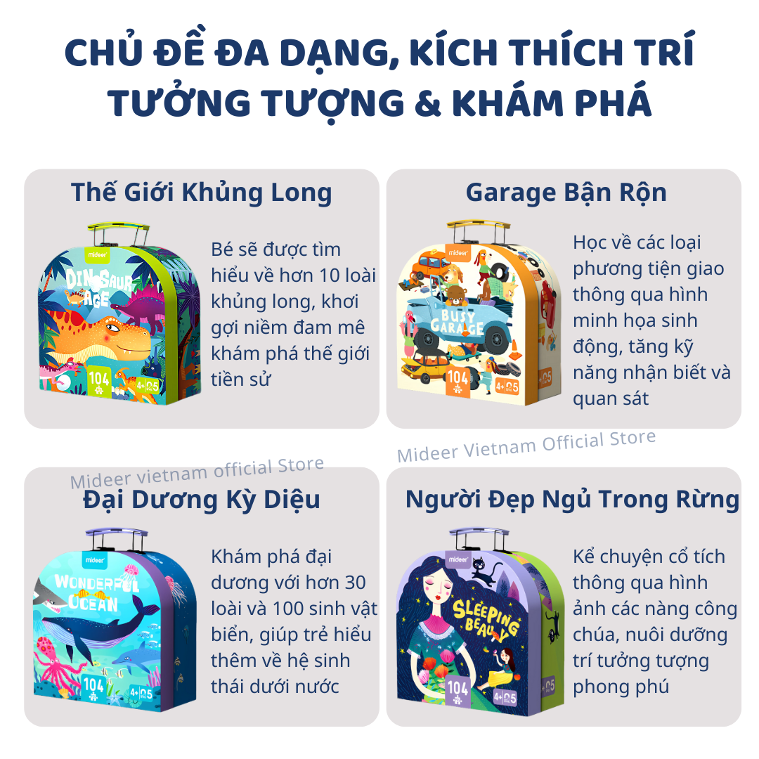 Mua tại TiktokCHÀO MỪNG BẠN ĐẾN VỚI MIDEER VIETNAM HÀNG SẴN SHIP HỎA TỐC, BẢO HÀNH CHÍNH HÃNG ————————————— Đồ Chơi Xếp Hình Đại Dương 104 Mảnh Wonderful Ocean Mideer Vali Gift Box Puzzle Bộ xếp hình khủng long cho bé lắp ráp lego Mideer - mỗi mảnh ghép một câu chuyện. Với thiết kế tinh tế và tính năng đa dạng, bộ xếp hình Mideer không chỉ là một món đồ chơi, mà còn là một món quà ý nghĩa và thực tế, mang lại giá trị lâu dài cho sự phát triển của trẻ. 7 Lý do ba mẹ nên lựa chọn Đồ Chơi Xếp Hình Đại Dương 104 Mảnh Wonderful Ocean Mideer Vali Gift Box Puzzle