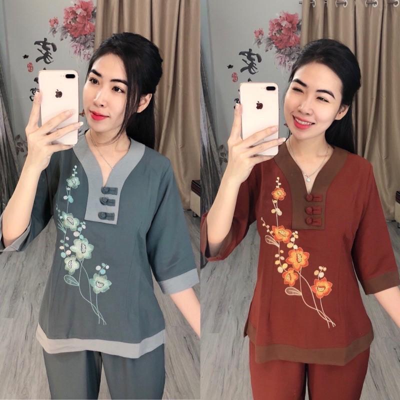 Đồ lam đi chùa đũi nhật thêu mềm mịn thanh lịch #shopcuamy #phapphuc #phapphucdichua #dolamdichuadep
