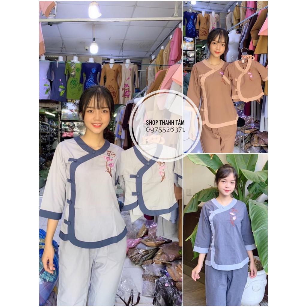 Đồ lam đi chùa - Quần áo đi chùa - Đồ lam phật tử - Bộ đồ đi lễ chùa thêu sen cổ tàu (Ảnh + Video shop tự quay) Bộ đồ lam phật tử