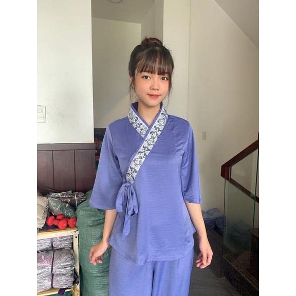 Mẫu pháp phục nữ - quần áo Phật tử đi chùa, đồ lam chất kate lụa mềm có co giãn Sen Hồng 0898553583