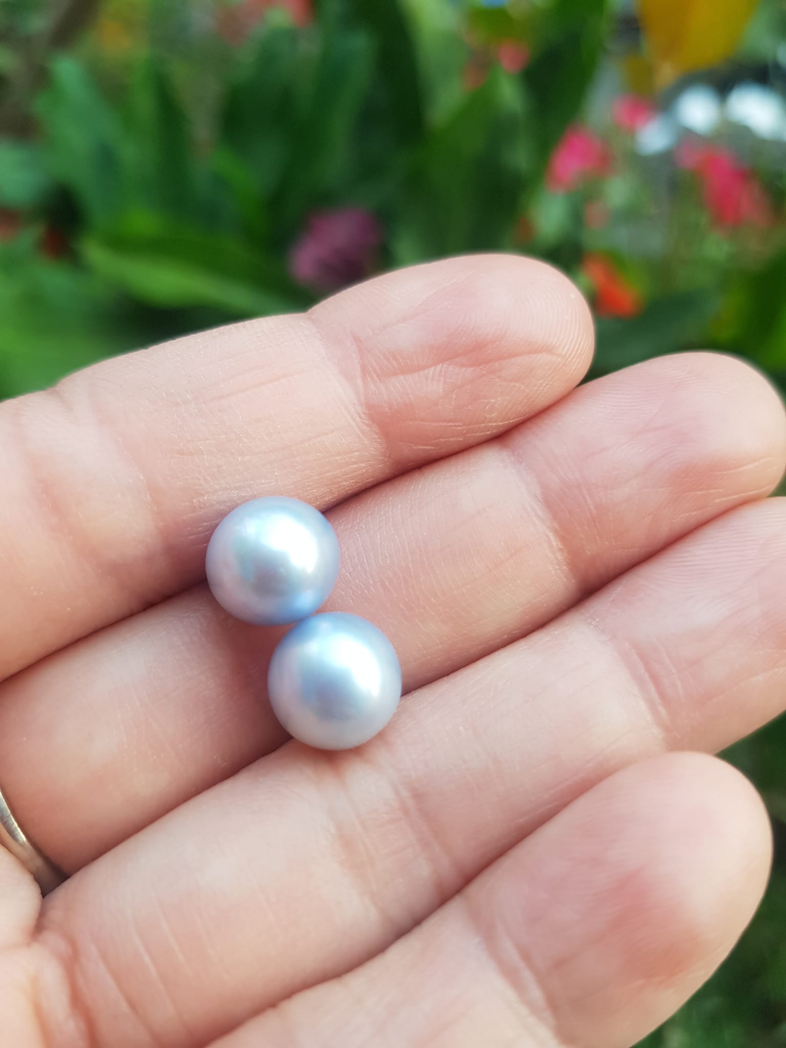 ✨Đôi Bông Tai Ngọc Trai xanh dương nhẹ bóng đẹp 9mm Size hạt 9mm ngọc trai cao cấp thiên nhiên mệnh Thủy Mộc Nữ về bọc Vàng làm đôi bông tai vàng đeo cực kỳ xinh luôn ạ