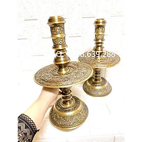 Cặp chân nến hoa văn đồng nguyên chất hai công nghệ cao 38cm