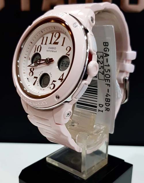 Từ dòng BGA-150 mặt to phổ biến đã xuất hiện các mẫu mới với số Ả Rập tuyệt vời cho bốn vạch giờ. Mẫu màu hồng nhạt và trắng kết hợp vạch giờ số Ả Rập màu vàng hồng mang đến họa tiết màu sắc nữ tính và thanh lịch. Ba mặt số cung cấp thông tin về ngày tháng, Giờ thế giới, đồng hồ bấm giờ và nhiều hơn nữa.