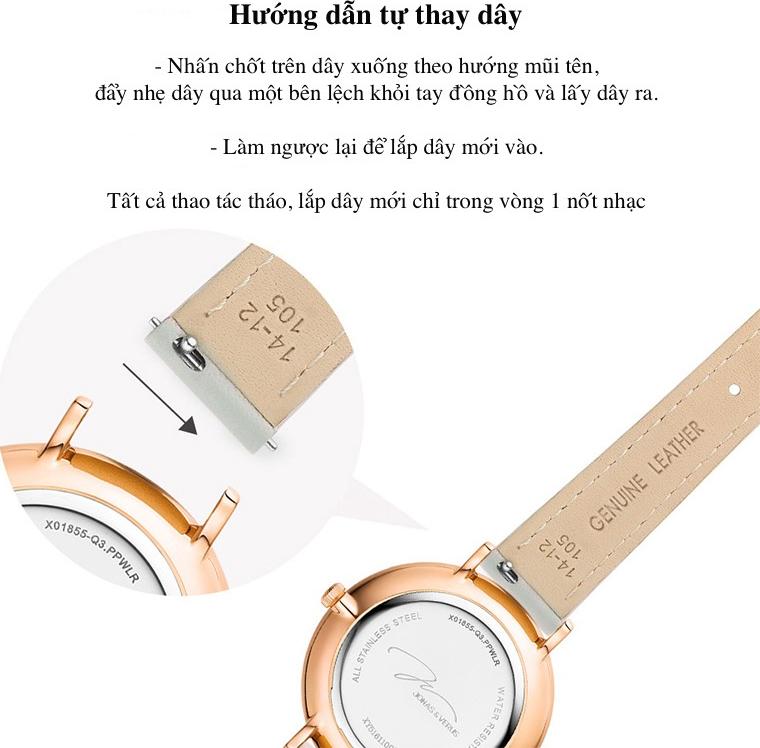Đồng hồ đeo tay nữ hiệu JONAS & VERUS, mã số X01856-Q3.PPWDWY, Dây Da Italy mềm mại, là một trong nhiều những chiếc đồng hồ Jonas & Verus được rất nhiều bạn nữ yêu thích. Với thiết kế hiện đại, chiếc đồng hồ giúp cho phái đẹp thanh lịch và nổi bật hơn.