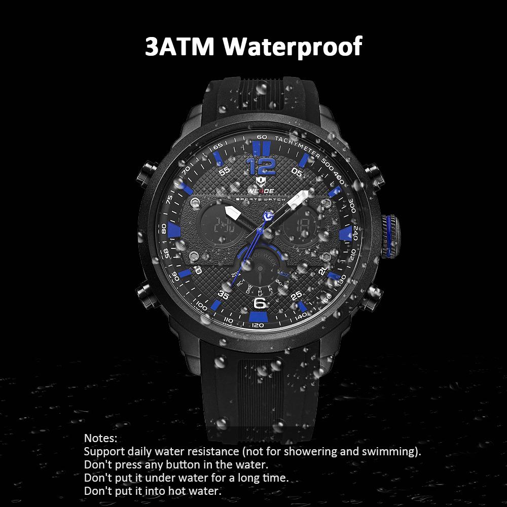 Introduction: WEIDE watch has professional craft, durable and comfortable to wear. The stylish and exquisite workmanship will keep you at the forefront of the fashion. Durable watch band, 3ATM water-resistant as well as many practical