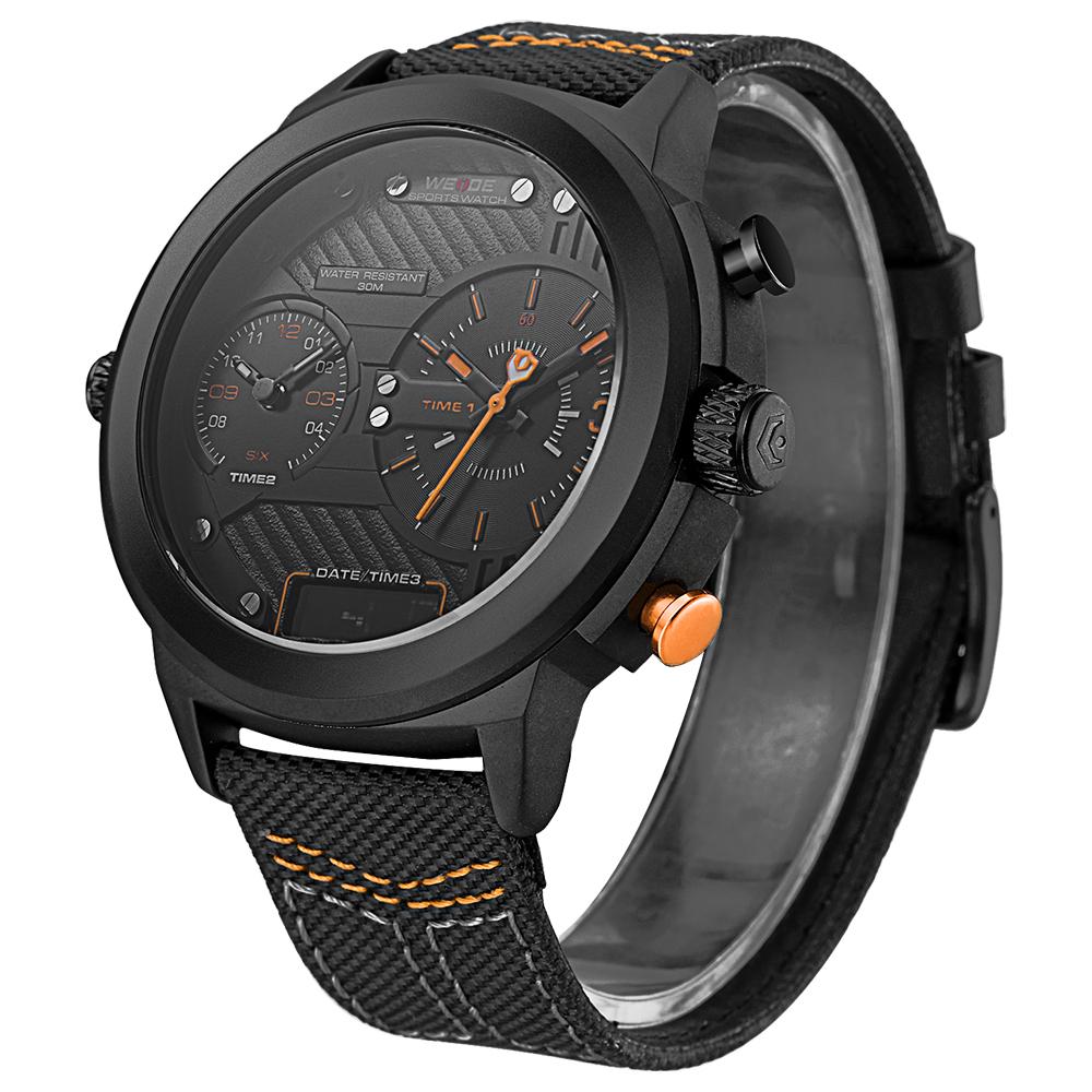 WEIDE WH6105 is a dual display quartz digital men watch for big-dial lover with tachymeter engraved on the case and the function of stopwatch and week. Features: - Six attractive versions for option. - Flashing